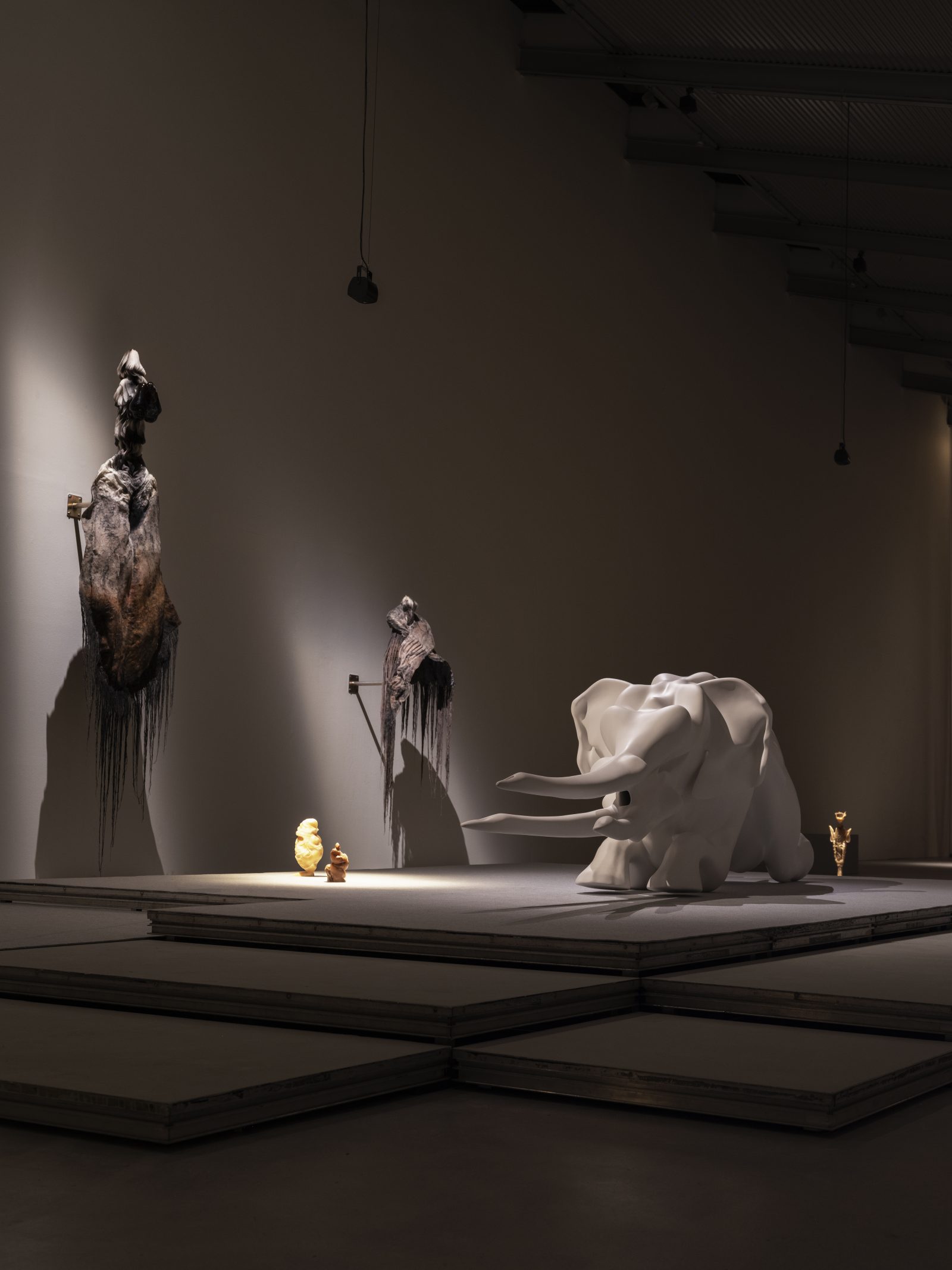 På ARKEN kan museumsgæsterne først åbne døren ind til et stort, asymmetrisk og mørklagt rum med flere meter til loftet. Børn skal gå med deres forældre for at sikre, at ingen kommer til at gå ind i udstillingens værker. For på gulvets forskellige niveauer lyser spots organiske skulpturer op, der får dem til at kaste lange skygger. Længere henne i rummet bliver et musikalsk kor højere og højere, og midt i rummet troner en stor, hvid elefant. Langs en væg svæver mystiske væsener, som jeg bedst kan beskrive som Master Yodas mere kunstneriske og flotte fætre.
