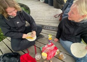 I Ystad rammer vi færgen, og til aftensmad flotter vi os med kold kartoffelsalat. Vi ser solen over Rønne og mærker spændingen over de kommende dage.