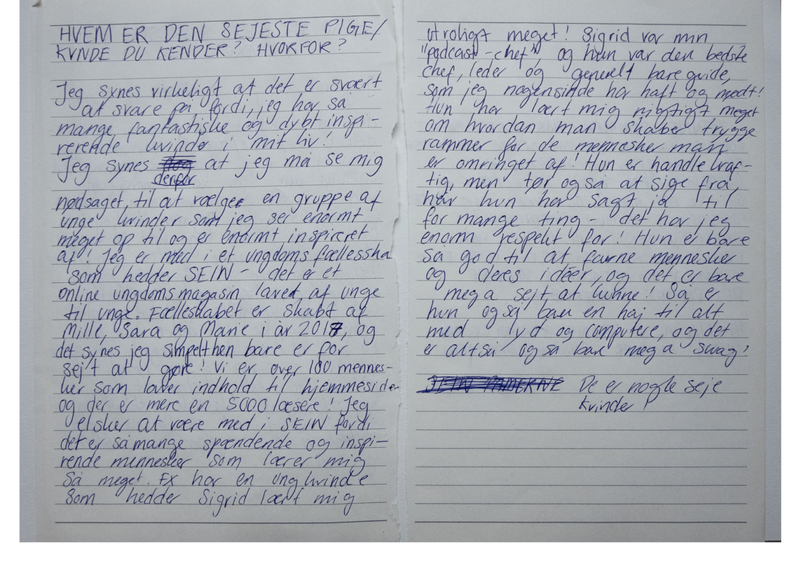 1) Hvem er den sejeste pige/kvinde du kender? Og hvorfor?