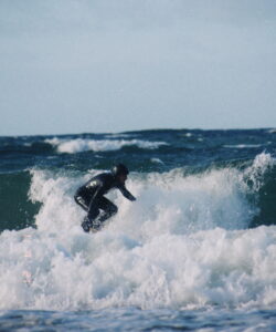 Lukas tilføjer: “Det er svært at beskrive surfing, fordi det er så individuelt. Det er bare en følelse, ligesom hvis man føler glæde. Jeg ved ikke, hvorfor jeg synes, det er så fedt. Jeg har altid bare elsket vand. Og så er surfing nok bare et sted, hvor jeg virkelig kan være til stede. Hvor det er nemt at være. Og så er jeg der.“