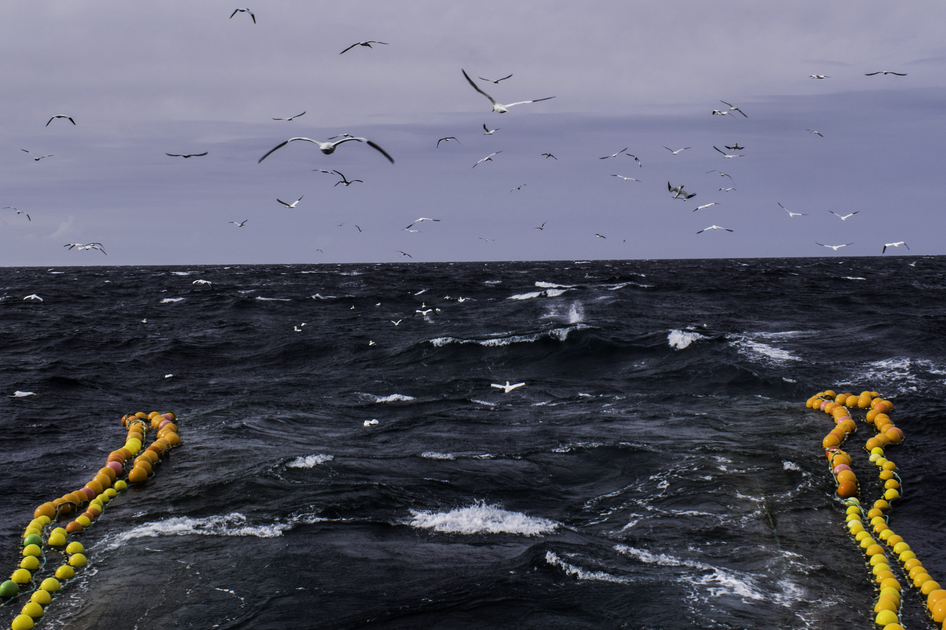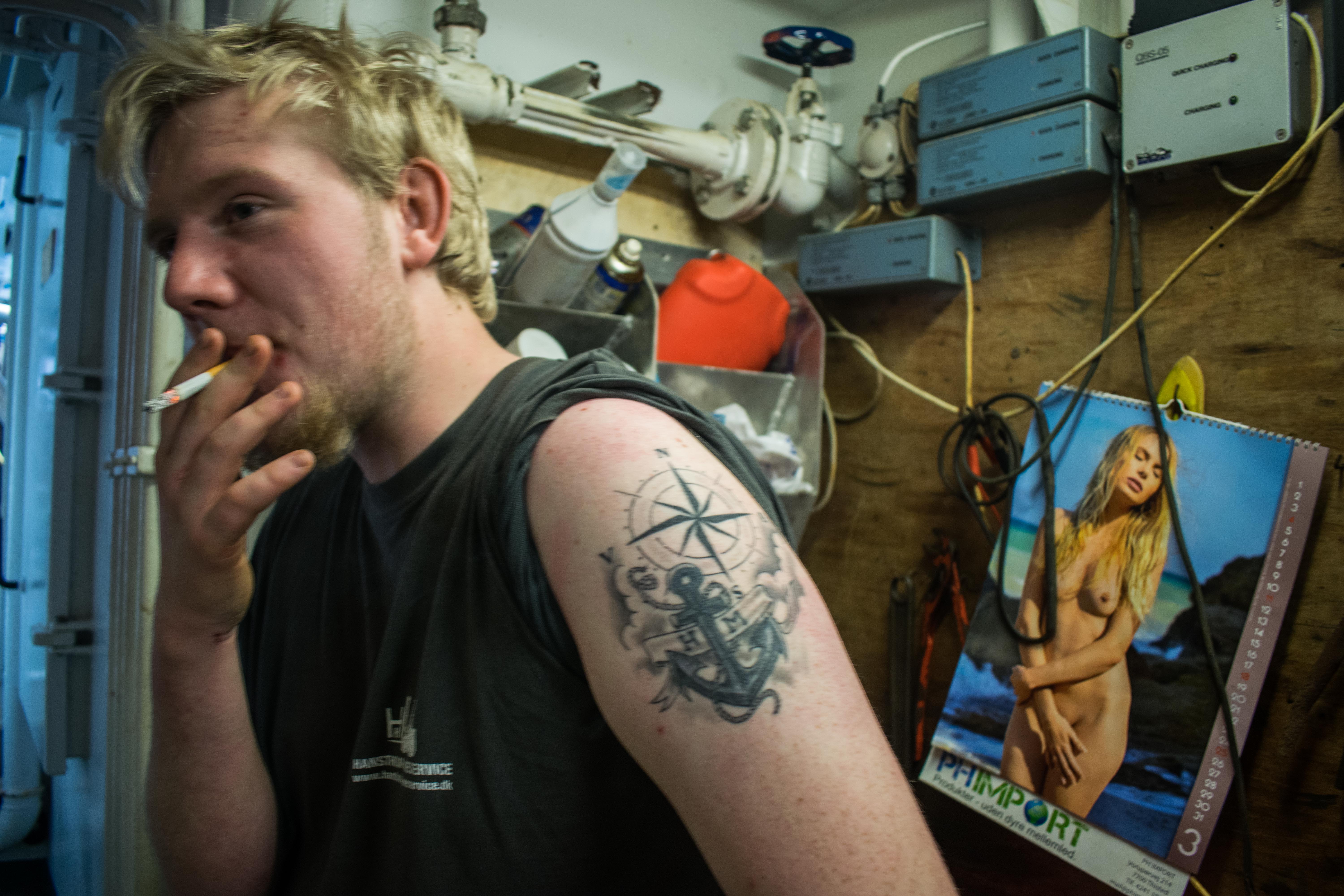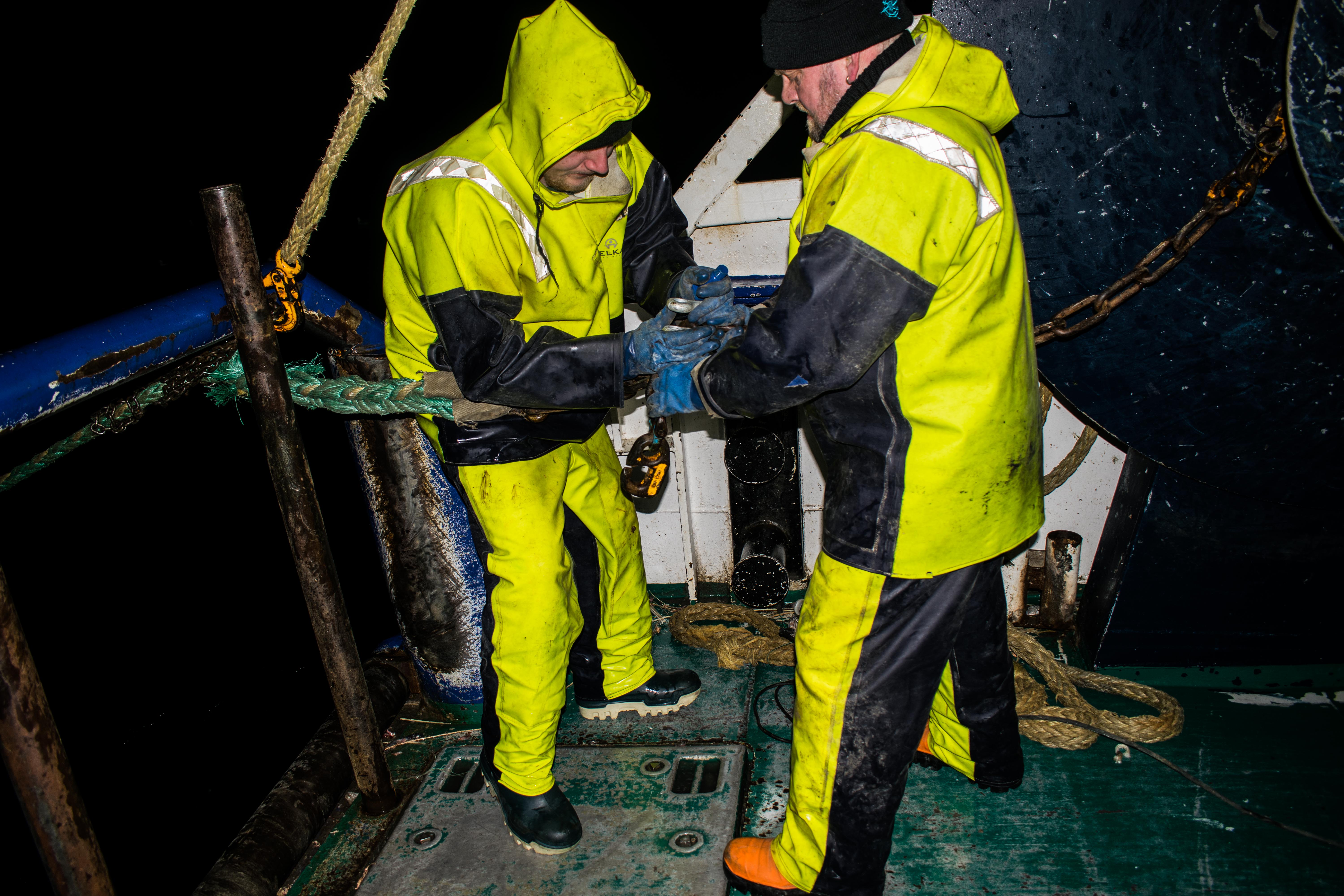 Mellem måger og bølger står fiskerlærlingen Christian og resten af ‘Team Westbank’ på et 127 tons tungt fartøj og fanger rejer i norsk farvand. Marius har været med Christian på havet og fotograferet reb, regnjakker og en skæv tatovering.