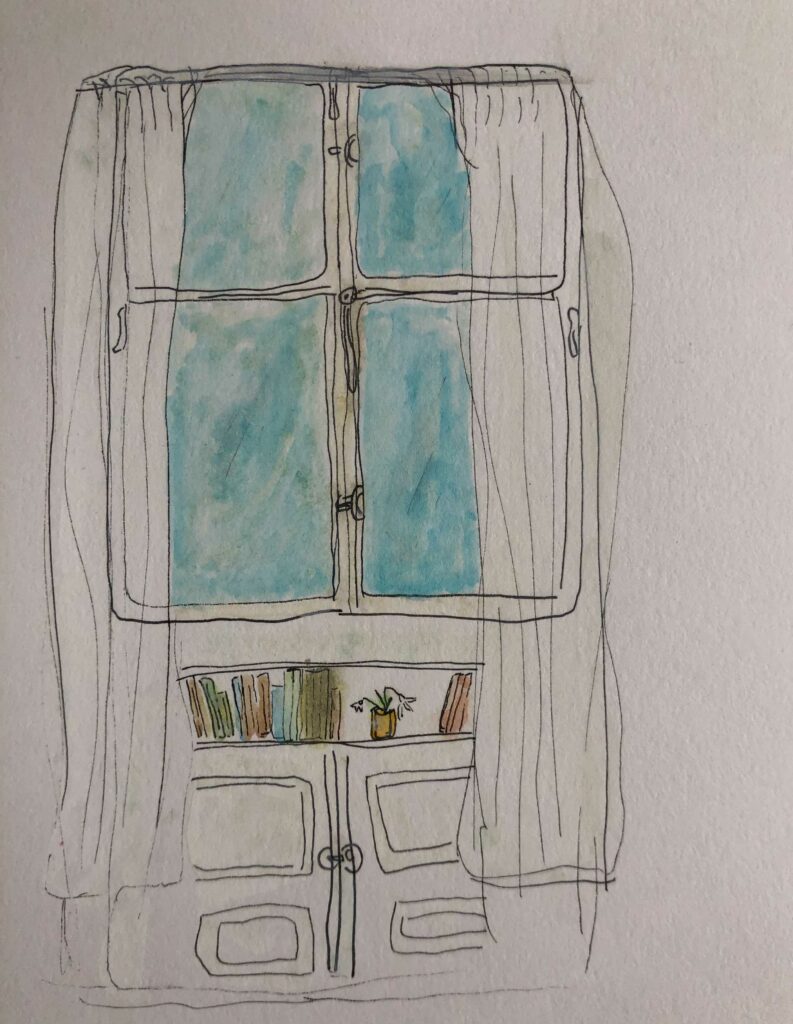Jeg bar en fyldt bogreol ind i rummet. Tørrede eukalyptusgrene. Løbesko. Skriveredskaber, notesbøger, badetøj. Remedier fra skiftende årstider. Kastanjer og grankogler. Vintergækker og kantareller. En sejltur. Jobs. Planer, stemmer, tomhed.