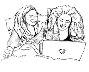 Vi lægger os til rette med resterne af Haribo-poserne mellem os, mens vi sætter reality-tv på, så vi enten kan grine eller starte endnu en dyb samtale, hvor vi igen tager fat i de samme barndomstraumer, uden at gå glip af et vigtigt plot. Oftest skifter vi imellem de to.