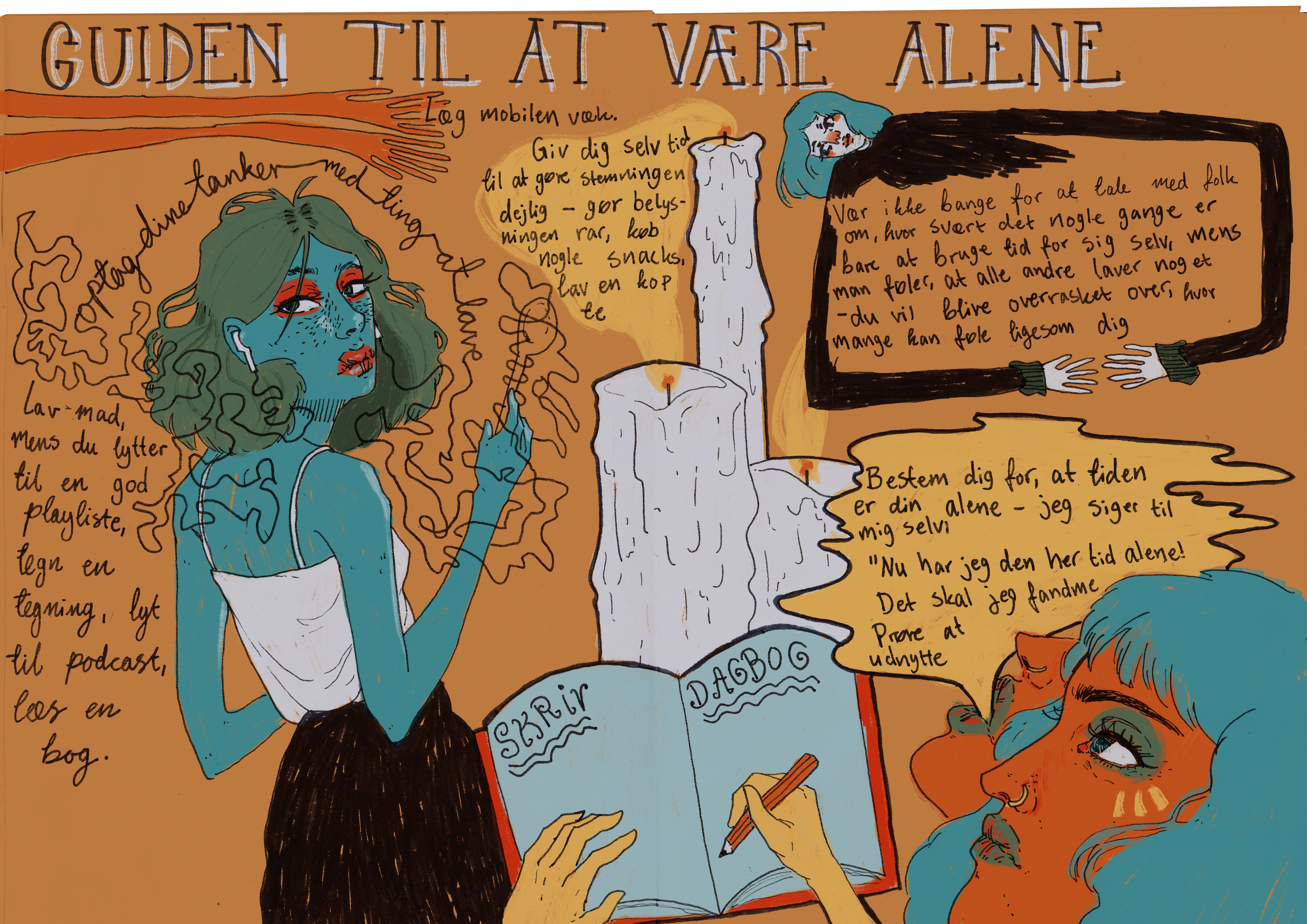 At male sit værelse. At åbne en øl uden en oplukker. At nyde sin tid alene. Freya er din tourguide, og igennem sine tegninger tager hun dig i hånden, så de små hverdagsvanskeligheder forhåbentligt bliver lidt nemmere.