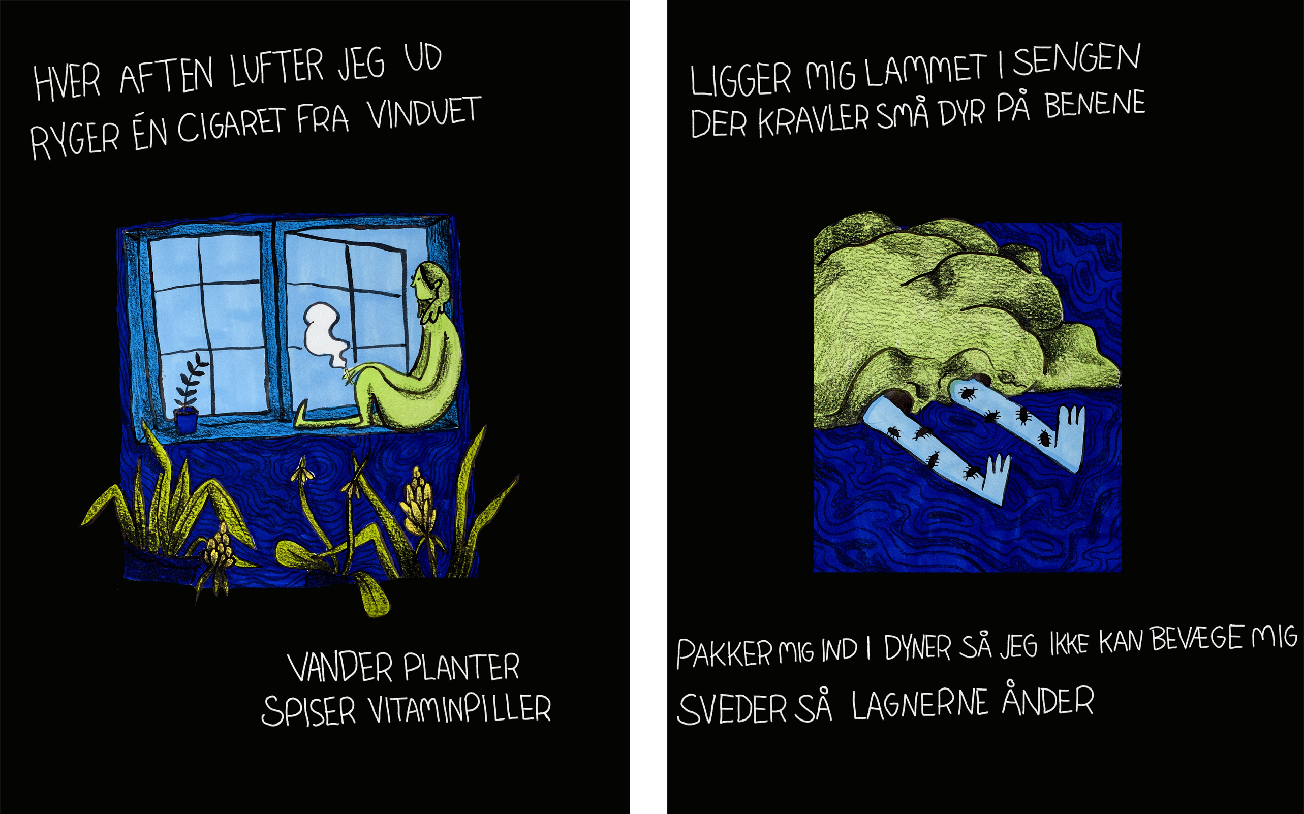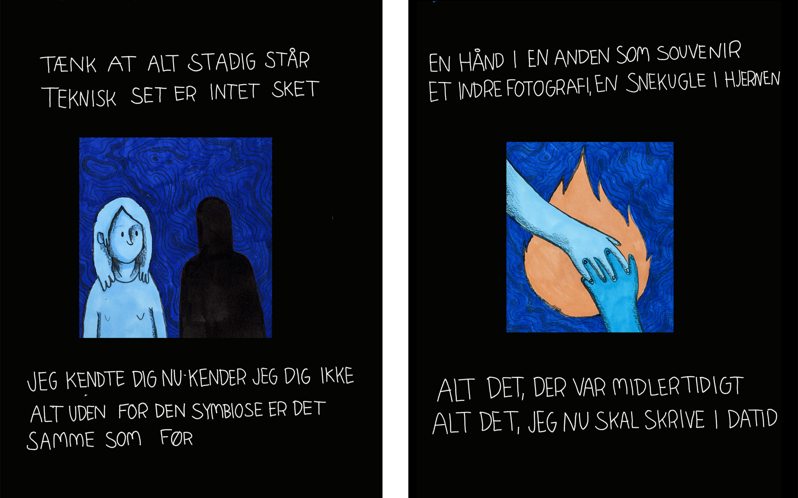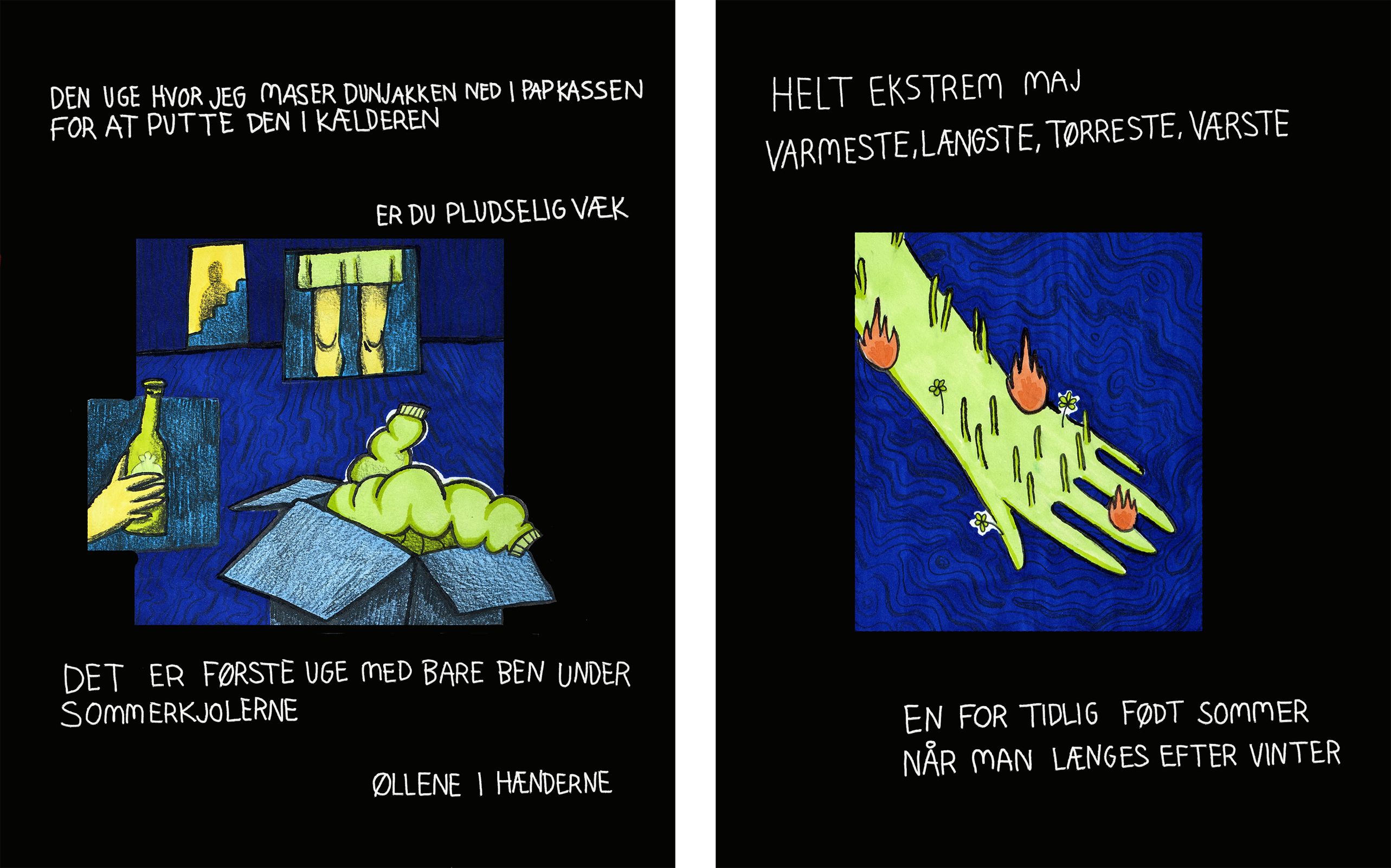 Følelsen af klam sved mellem lårene og en snekugle i hjernen. Olivia har skrevet et forårsdigt. Et trist forårsdigt. Om at holde i hånd med vanter på. Om alt det, der nu skal skrives i datid.