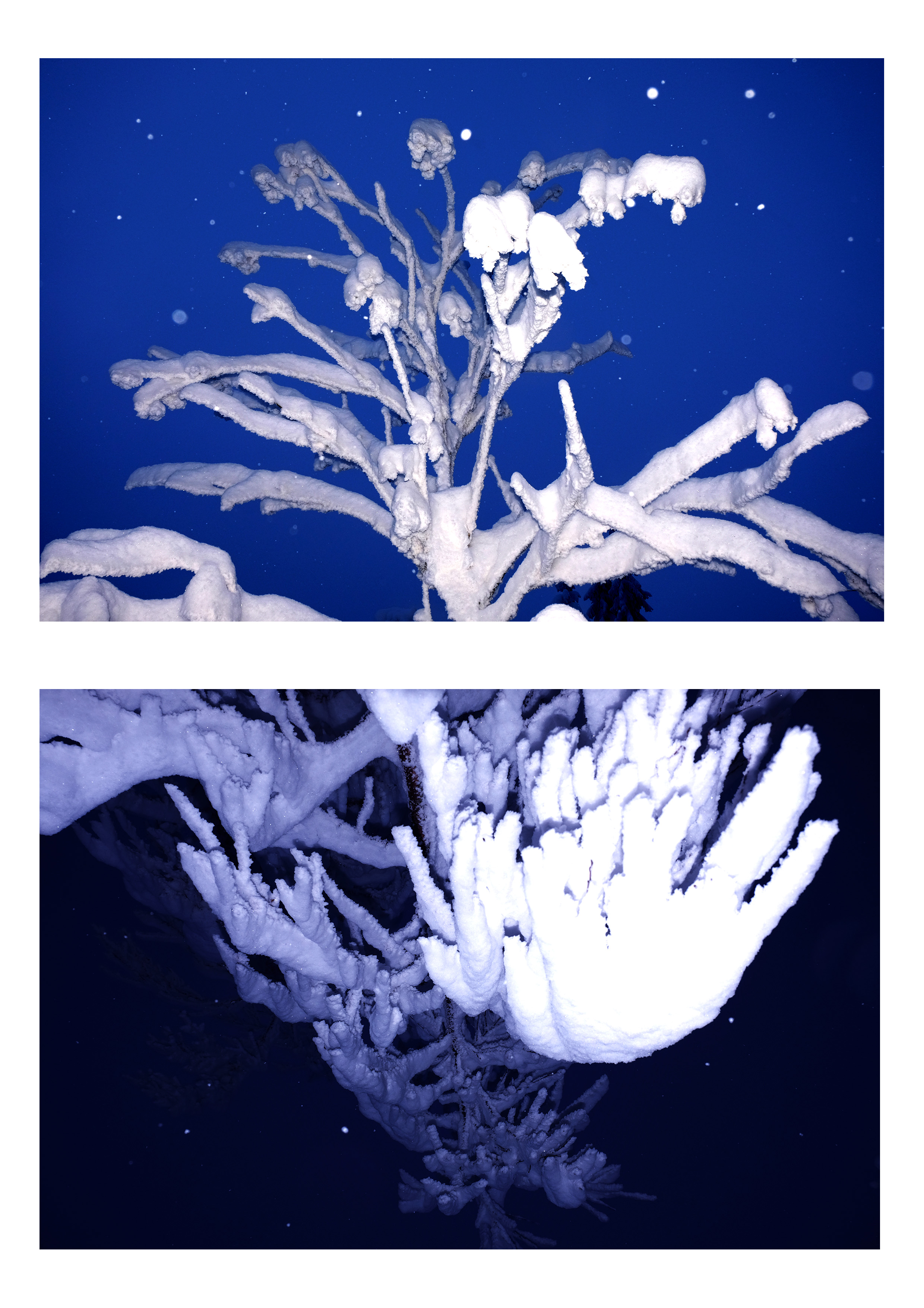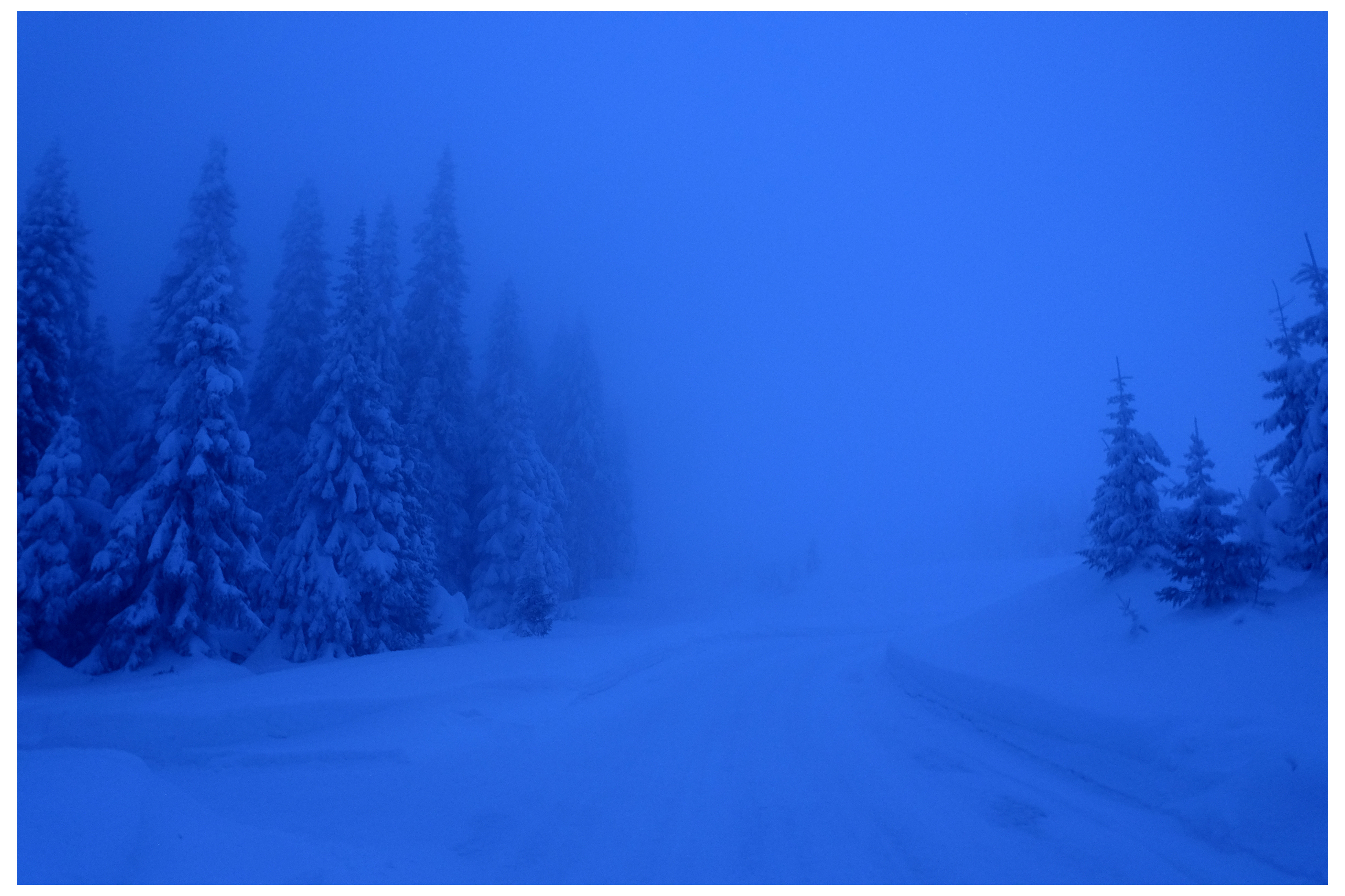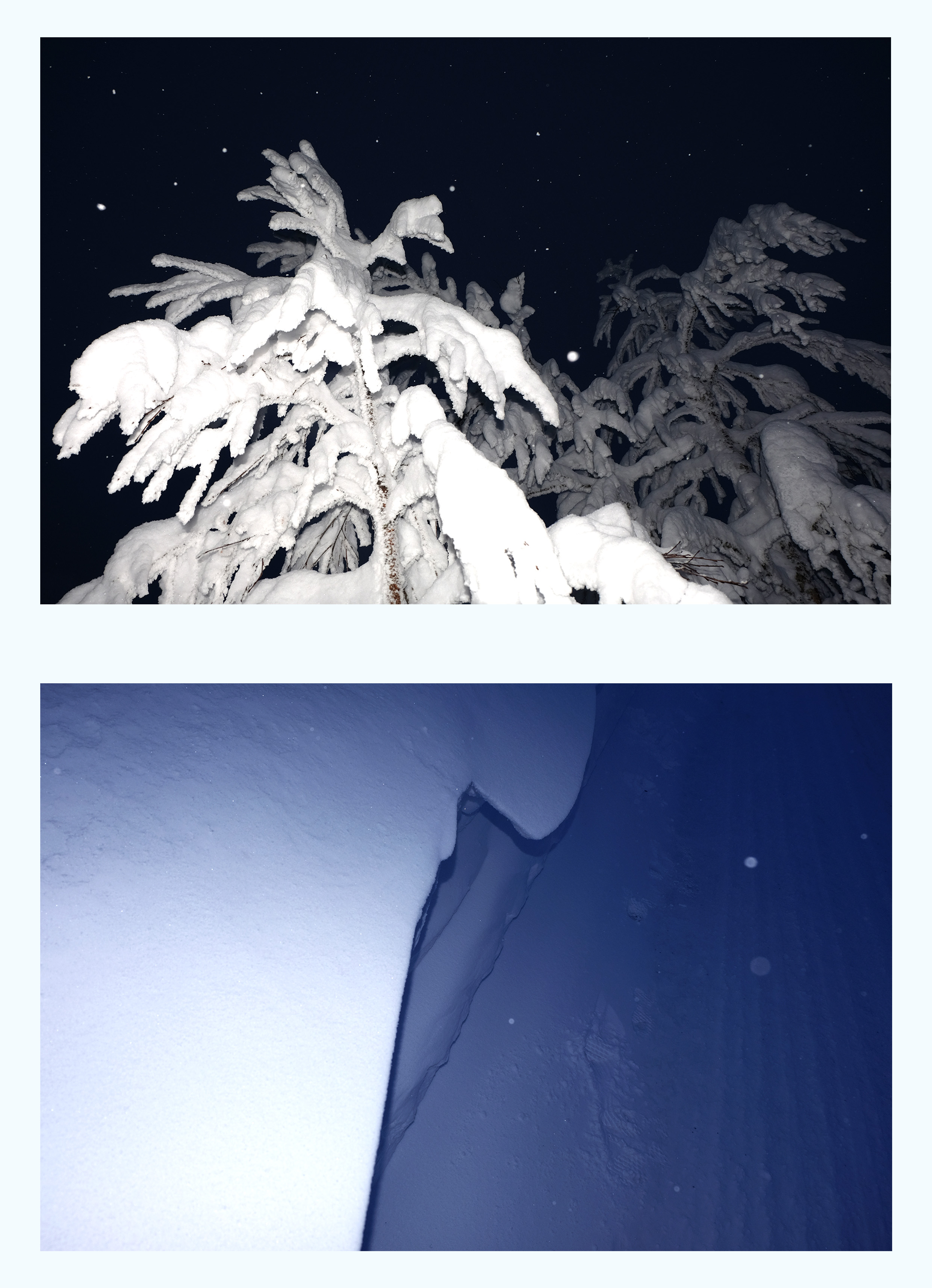 Det eneste, jeg kan høre, er en kontinuerlig og uundgåelig knitrende prikken fra de frosne fnug, der lander overalt og langsomt gør laget af sne højere. Meget, meget langsomt.