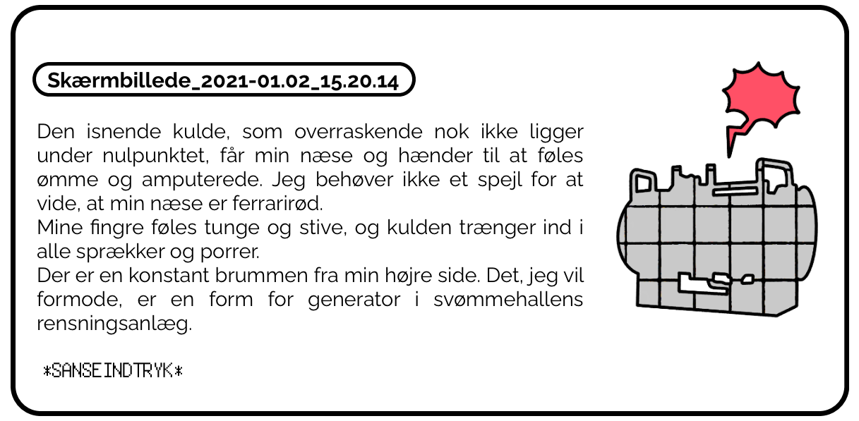 Når man keder sig, kan man lægge mærke til alle de små sanseindtryk, der vrimler omkring en. Nedenunder er ‘skærmbilleder’ af de sanseindtryk, jeg kunne opfange på en kort gåtur.
