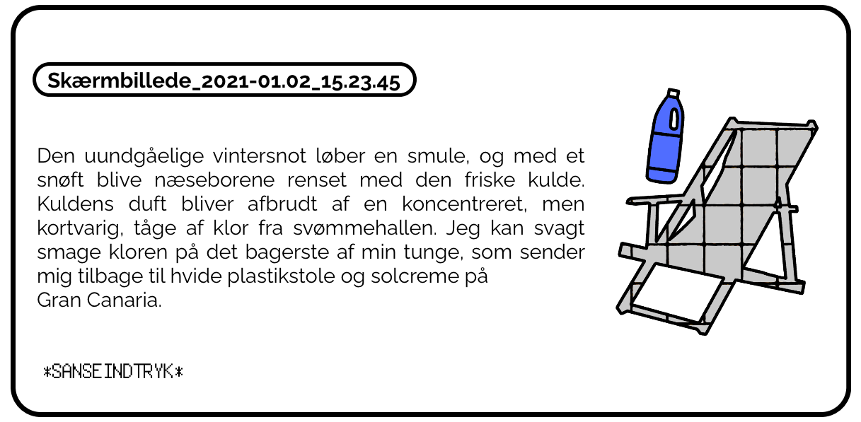 Med tiden bag utallige Zoom-opkald og virtuel undervisning er vi blevet tvunget til at kede os. Det har for Nicolais eget vedkommende vist sig at være meget sundt. Han er begyndt at lægge mærke til de små ting, der før lå gemt i hverdagens ræs. Han har beskrevet et øjebliks sanseindtryk og illustreret billeder dertil.