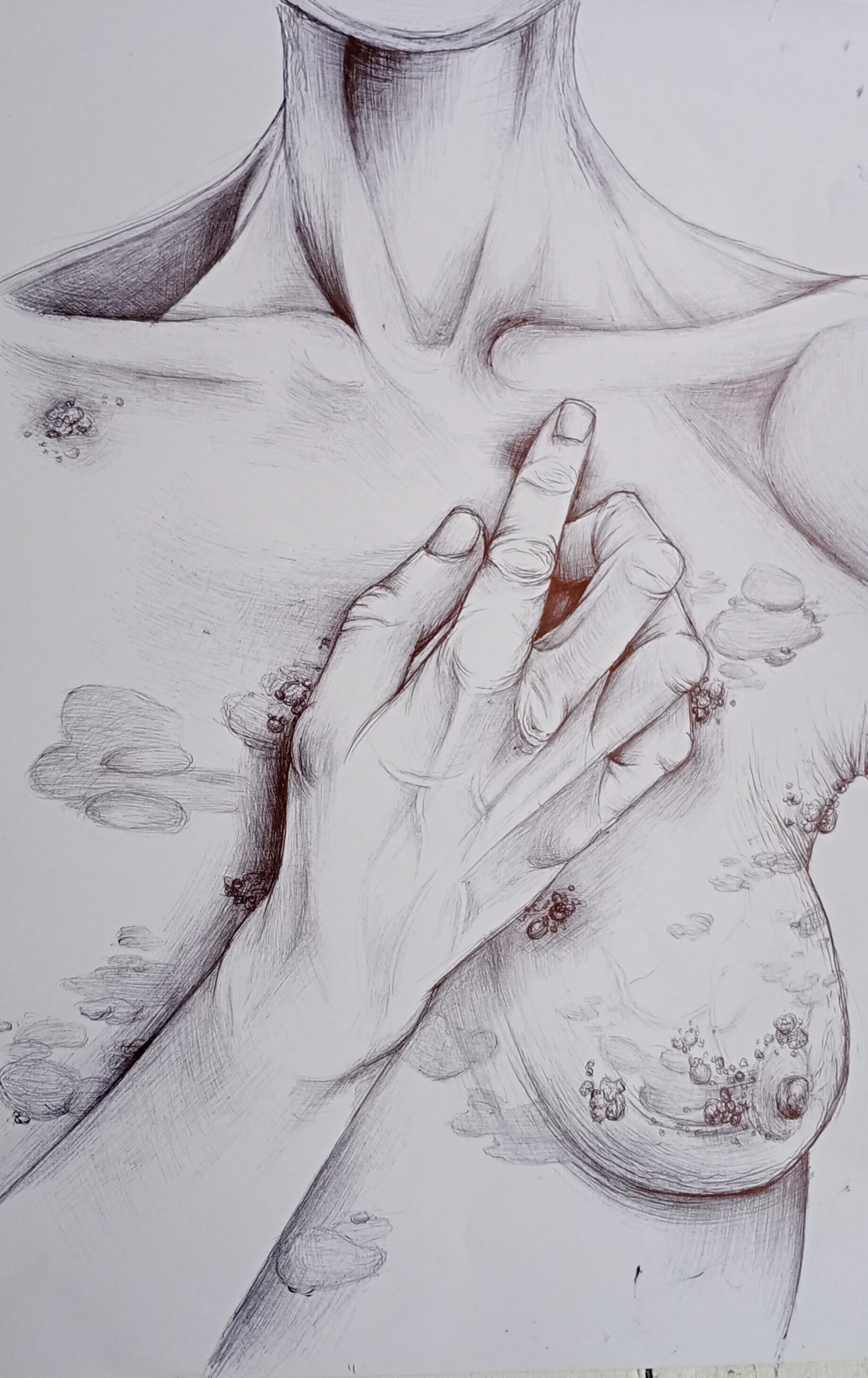 Jeg arbejder meget med kroppen og kropsdysmorfi, og gennem deformation at kroppen søger jeg at adskille den fra dens funktion som krop og blive et kunstnerisk motiv i stedet.”