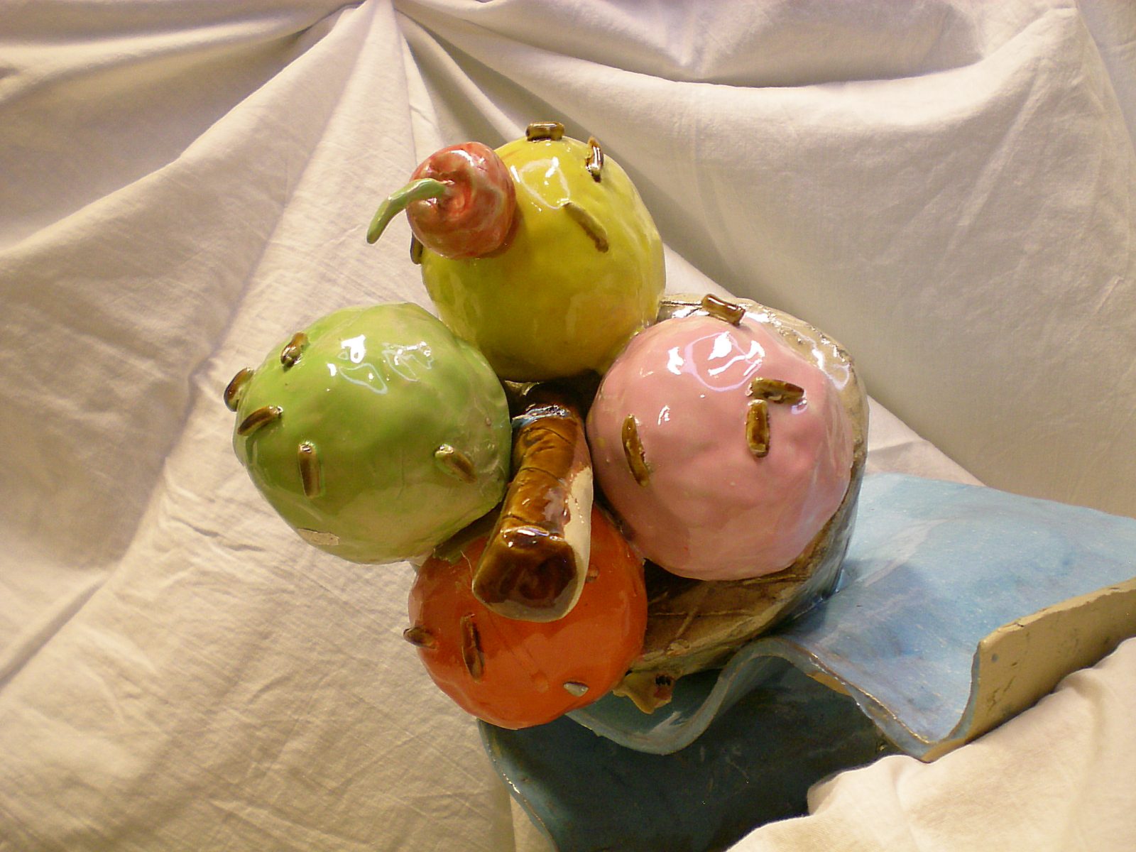 “Jeg byggede en kæmpe vaffelis i keramik for at vise, hvordan man kan holde fast i barndommens leg. Jeg arbejdede med at forme kugler, vaffel og kirsebær, så det så næsten spiseligt ud. Idéen kom fra tanken om, at man ikke skal miste alt det sjove, bare fordi man bliver ældre. Undervejs prøvede jeg farver og balance, så isen næsten kunne vælte. Værket handler om at fastholde glæde og leg, selv når man bliver voksen.”