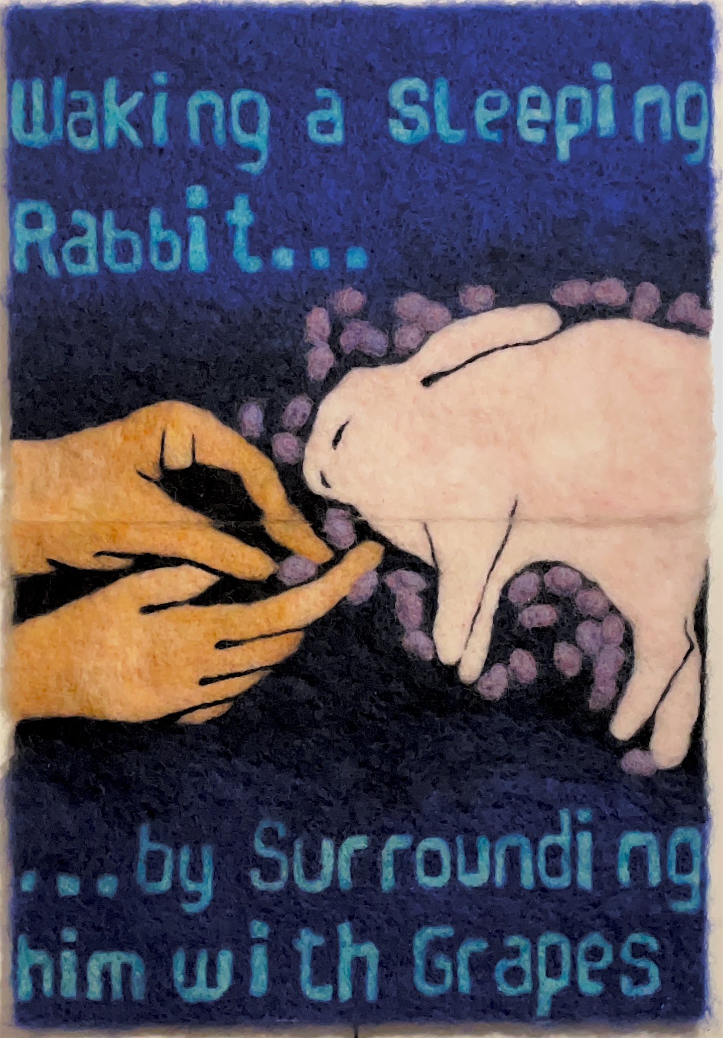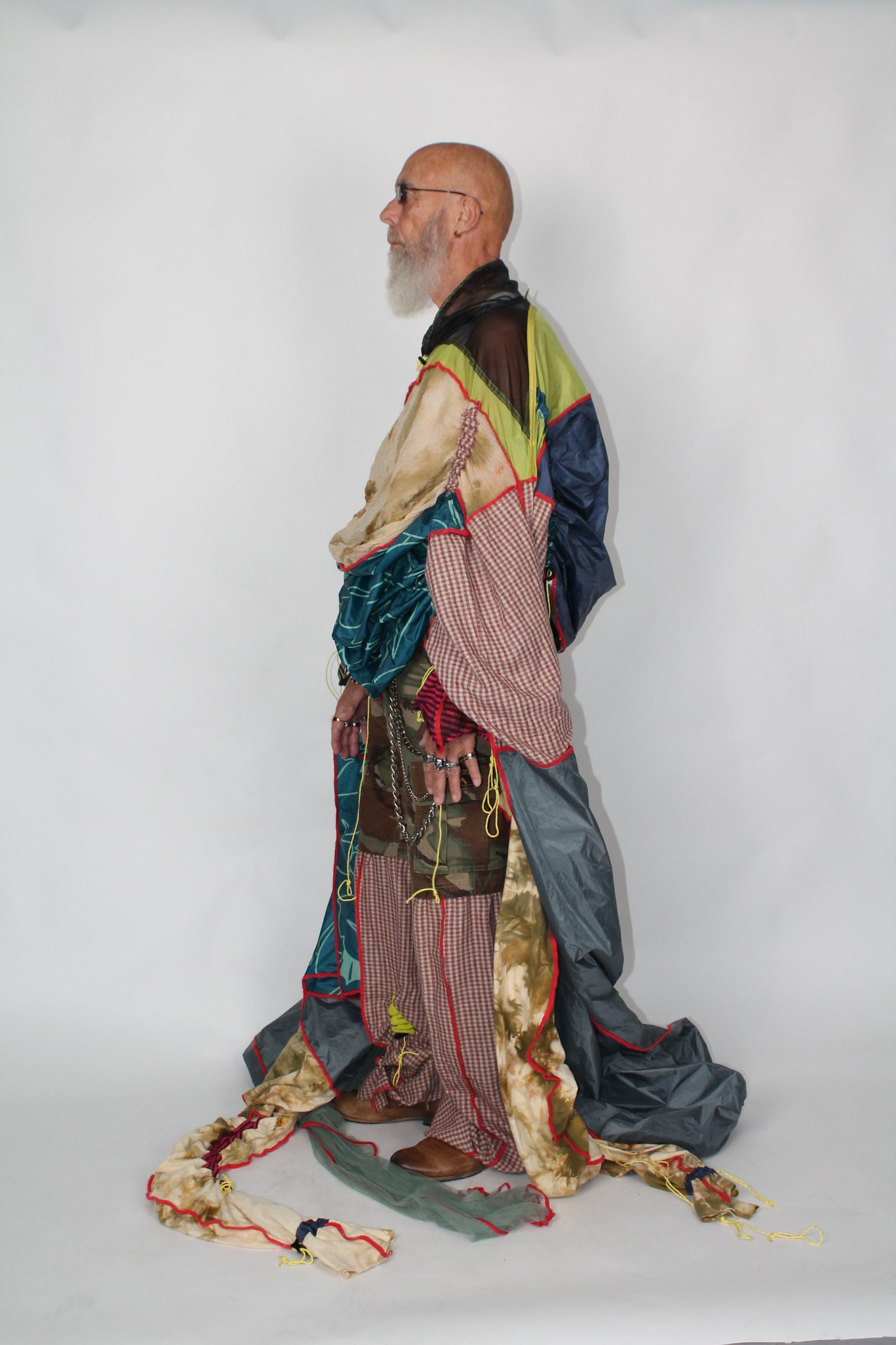 Dette tekstilhåndværk er syet ud af kasserede telte fra Roskilde -og Smuk Festival. Plads til fordybelse og kreativ udfoldelse er vigtigt i en tid, hvor alt skal gå stærkt og være perfekt.”