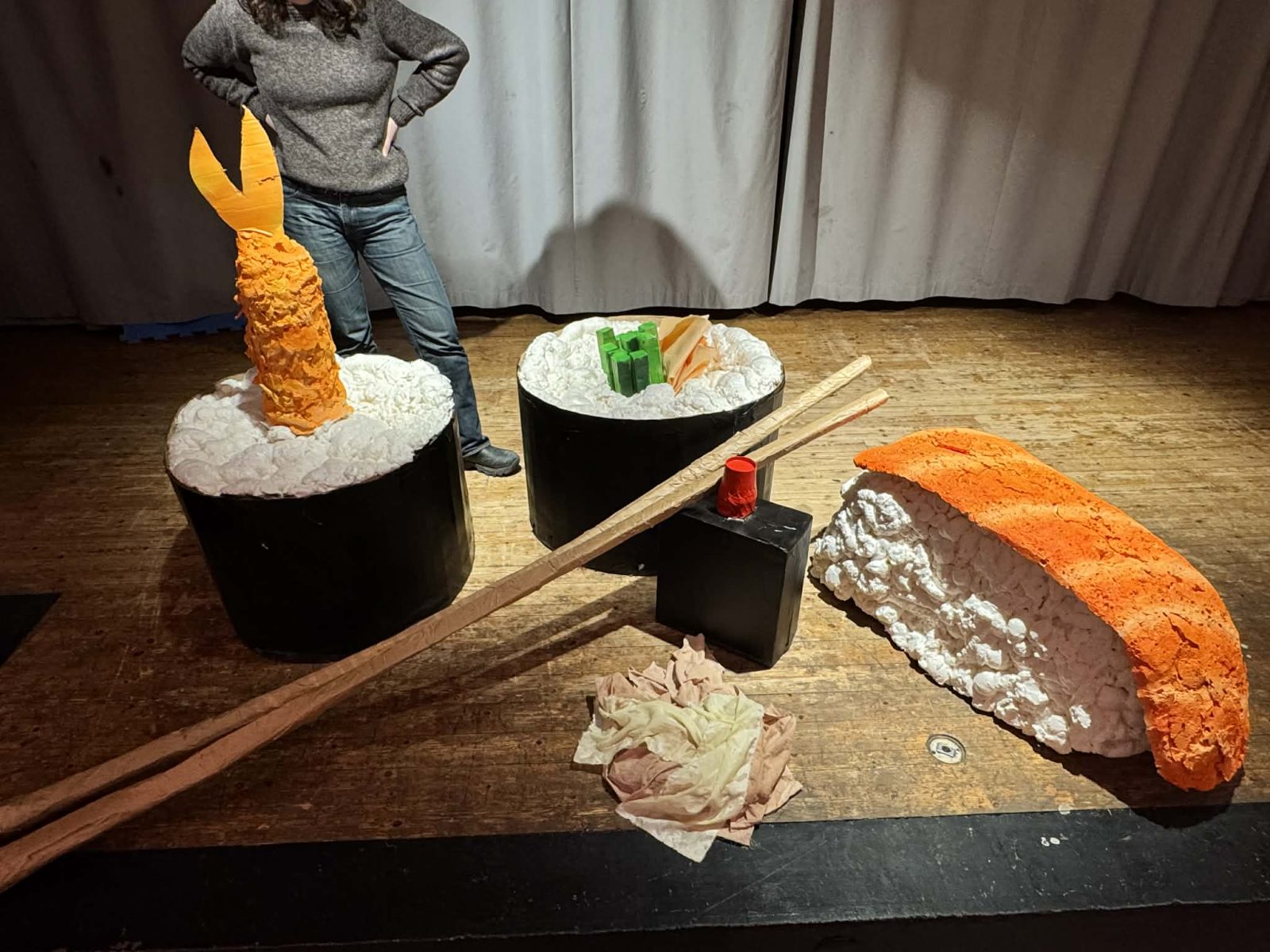 “Vi lavede kæmpe sushi-skulpturer i mixed media, fordi vi synes, små drømme kan fylde helt vildt. Det blev et gruppeprojekt, hvor vi prøvede forskellige materialer og størrelser af skulpturer. Vi ville gøre noget hverdagsagtigt sjovt og stort. Undervejs legede vi med farver, former og hvordan skulpturerne kunne fylde rummet. Det handler om, at selv små ønsker kan blive store og synlige.”