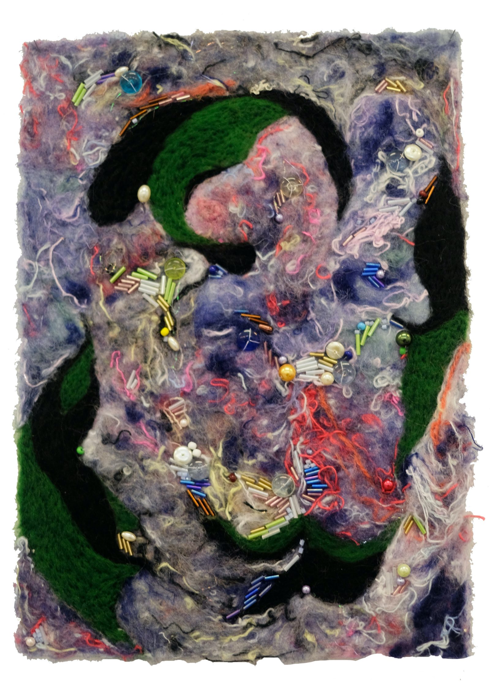 Brevpapir, akvarel, oliekridt, farveblyant, magasinudklip, tekstil. 2026