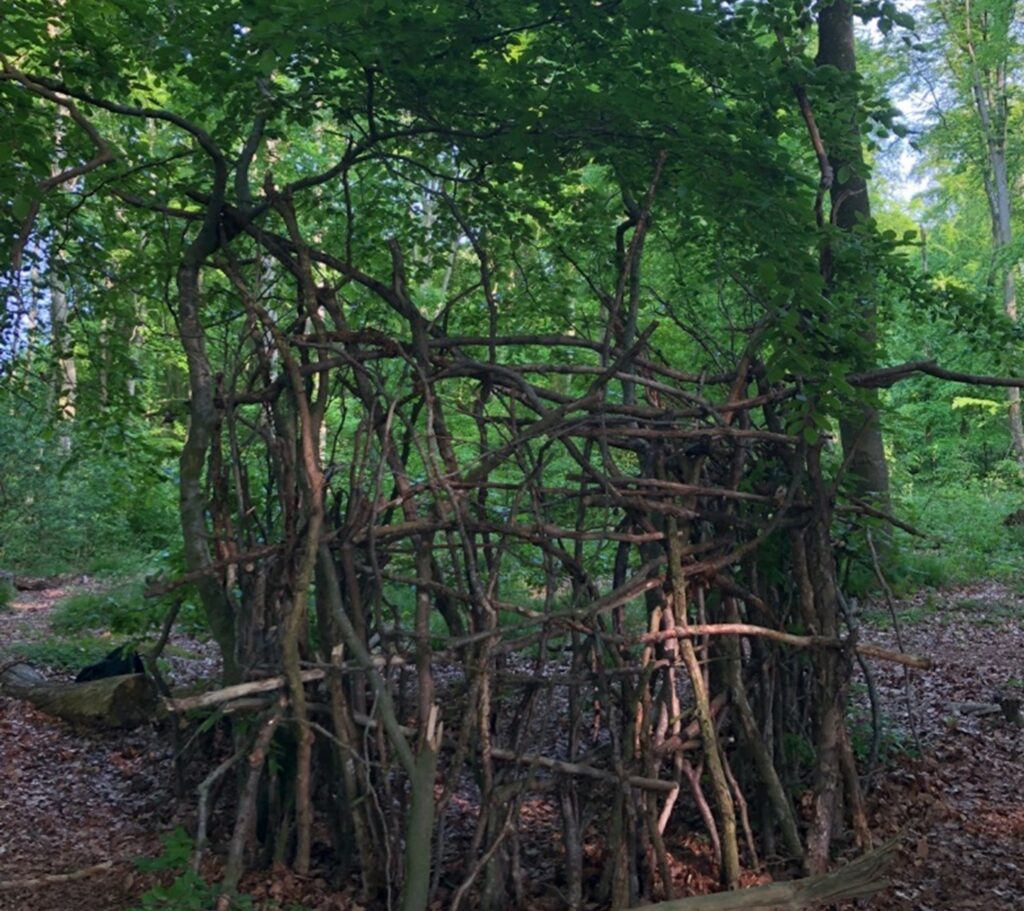 I flere timer ad gangen kunne jeg lede i skovbunden efter de helt perfekte grene, og i processen med at flette hulen fandt jeg ro (når jeg altså ikke var enorm frustreret over, hvor besværlig bygningen var).