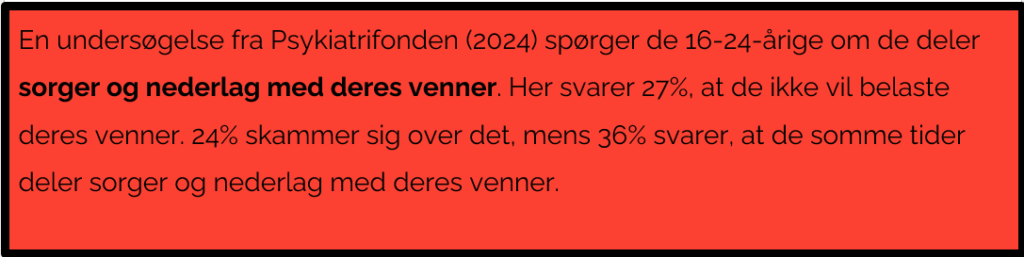 Nu har vi snakket om unges mentale helbred en gang mere, og jeg er sikker på, at vi alle sammen godt vidste, at jeg ville ende med at sige, at moral of the story er, at det hele bliver lidt lettere, hvis du deler det med dine venner eller familie.