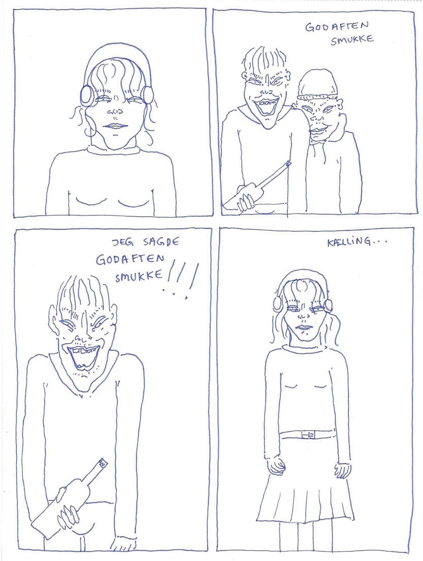 Tegneserien tager udgangspunkt i kunstnerens og hendes omgangskreds’ egne oplevelser.