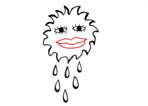 Jeg nåede at fælde de første par tårer, før himlen åbnede sig. Det var, som om det var mig, der gav tegn til himlen. Som om den først ville give slip på sine ferske tårer, når jeg gav slip på mine salte. Så sad vi der og græd sammen, mig og himlen.