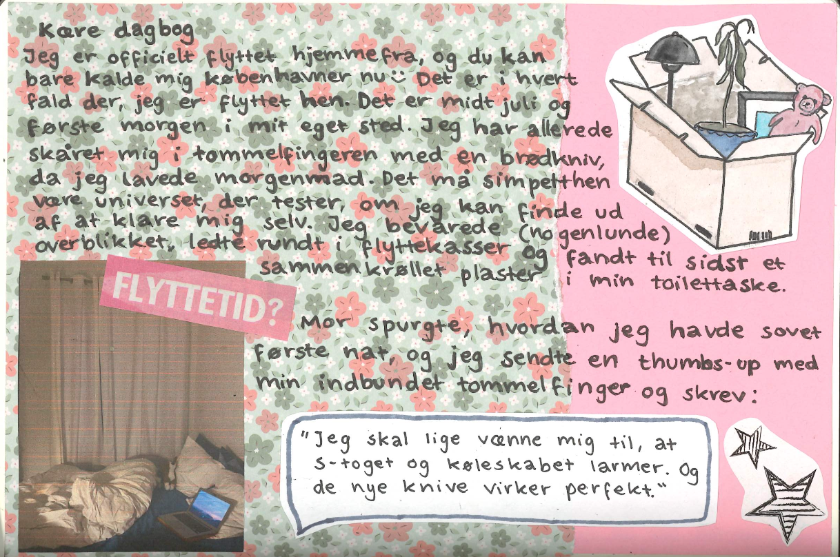 Mathilde er flyttet fra sin hjemby Odense for at studere i København. I en tumult af tanker, tvivl og omvæltende begyndelser har Mathilde forsøgt at klippe-klistre sin vej igennem kaosset som ny studerende og udeboende i København.