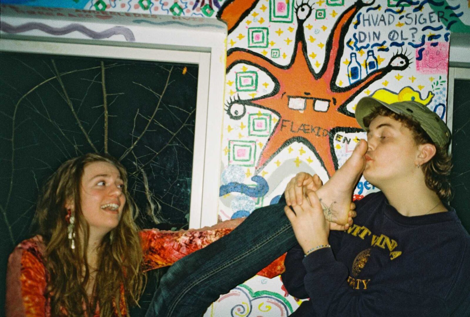Karla og Shannon, som også er kunstneren bag stjernemonsteret på væggen. Karla fik senere tatoveret samme motiv, som ses på hendes ankel. Tatoveringen skete i den selvsamme sofa, som hun faldt i søvn på.