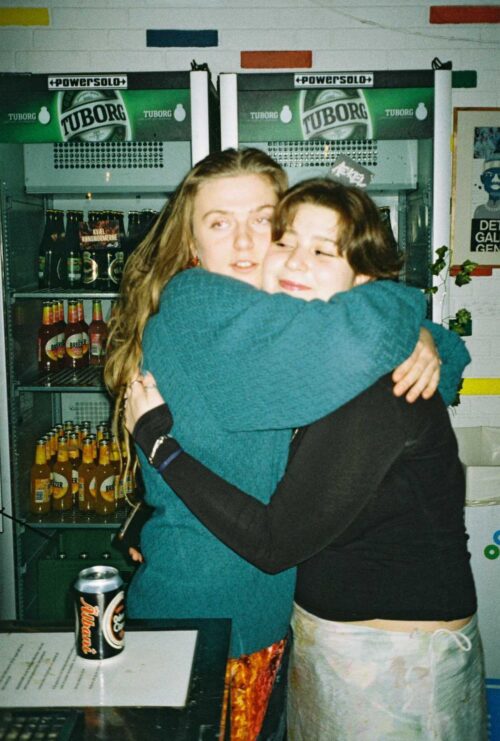 Karla og Julija I en lang krammer. Jeg bad dem blive stående, så jeg kunne nå at tage et billede. “Du har god tid, vi kan snildt stå her i 20 minutter”, siger Karla. Julija kaldes ”den nye Karla” på gymnasiet, hvor Karla dimitterede fra i sommers, hun har drivkraft og bærer flere af Karlas projekter videre.