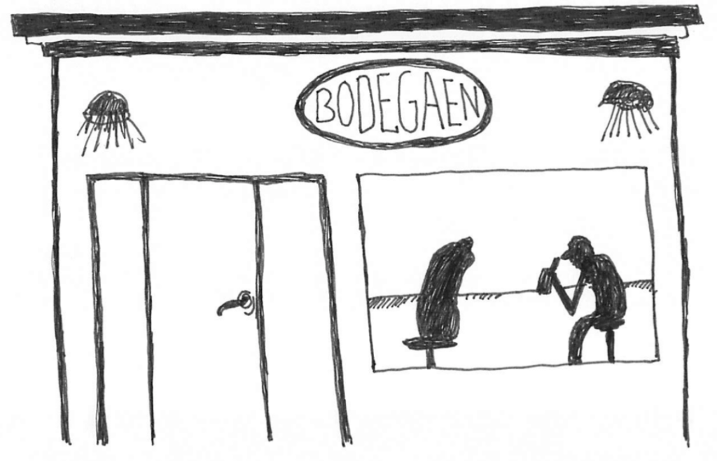 Vi er ved at have drukket ud, og selvom dette er et professionelt møde og interviewet er nået til vejs ende, nænner jeg ikke at efterlade ham så sørgmodig på bodegaen.