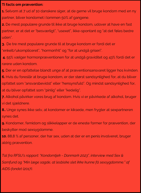 Denne artikel er skrevet på baggrund af RFSU’s undersøgelse ‘Kondomtjek – Danmark 2023’, interview med Sex & Samfund og personlige erfaringer.
