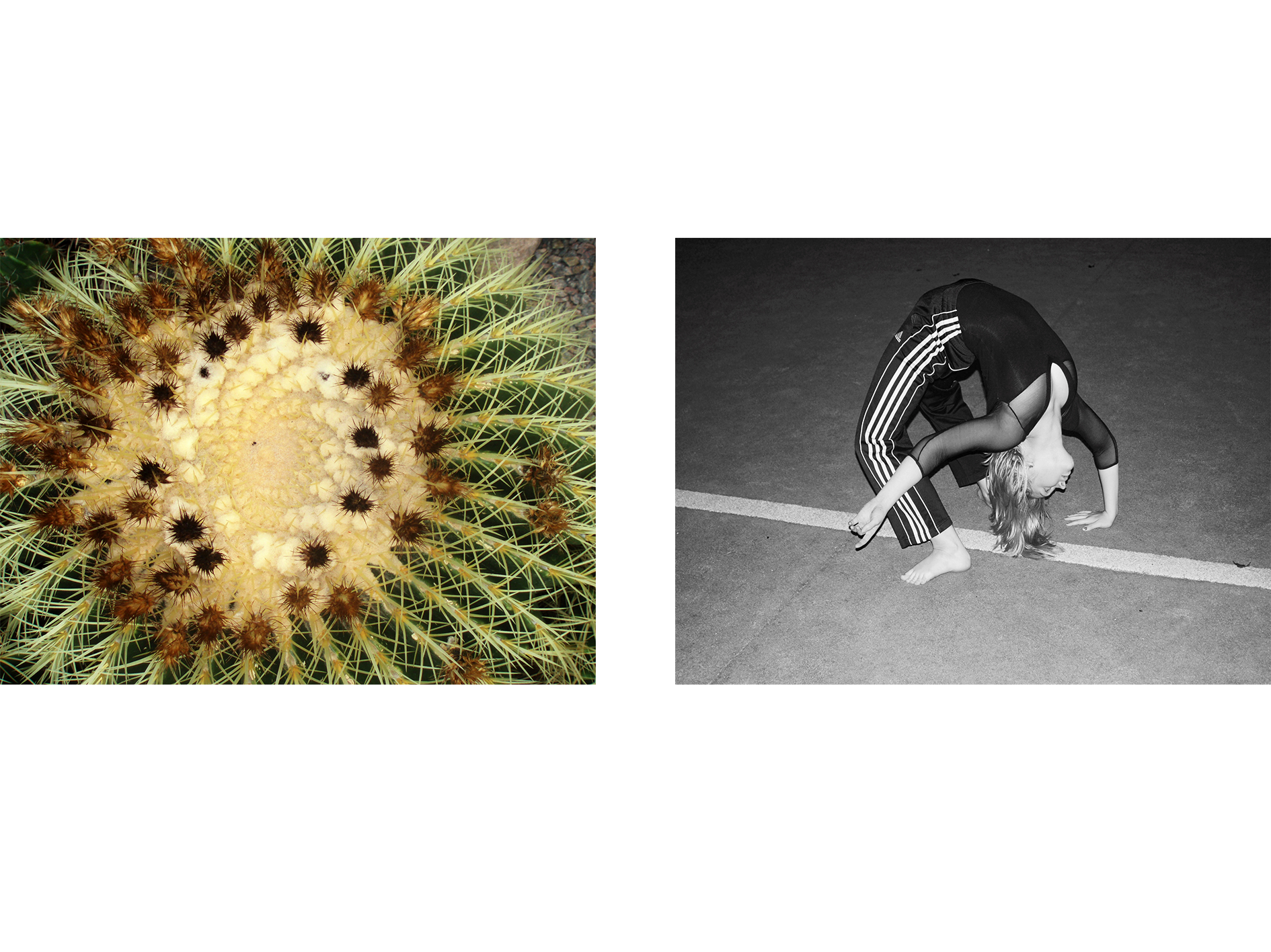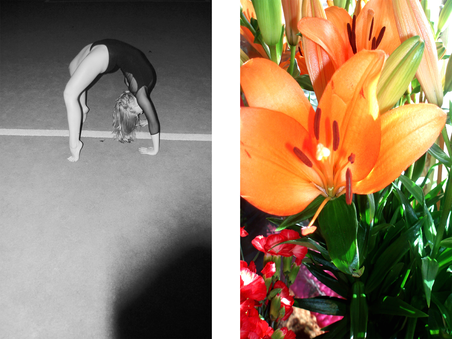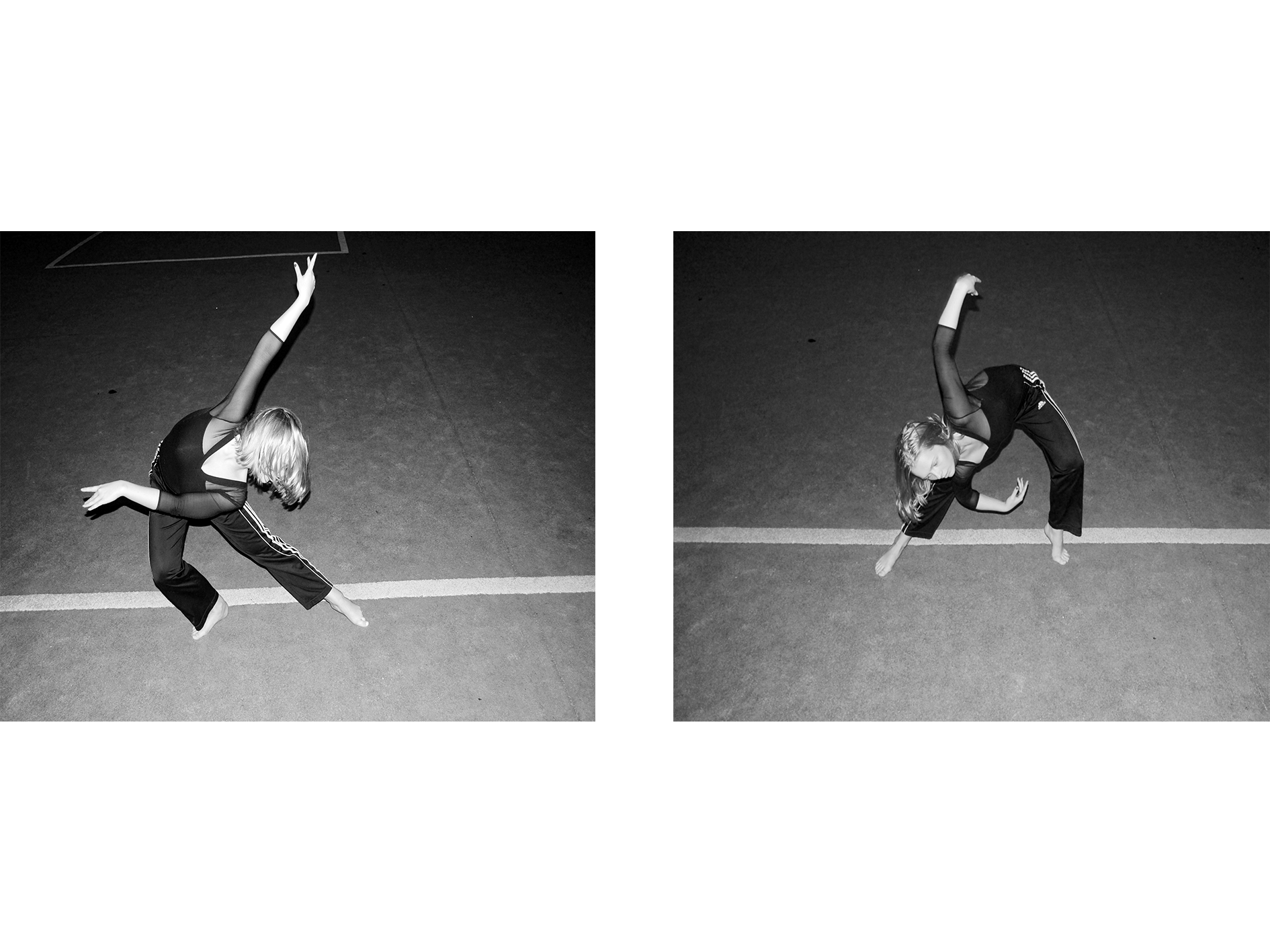 Linjer, mønstre, positurer. En danser i en gymnastikhal og en detalje fra en plante. Astrid undersøger i denne billedserie mellemrummet mellem mennesker og natur og sammensmeltningen af de to i dansen. Om sårbarhed, cirkulation og det at modnes og blomstre.