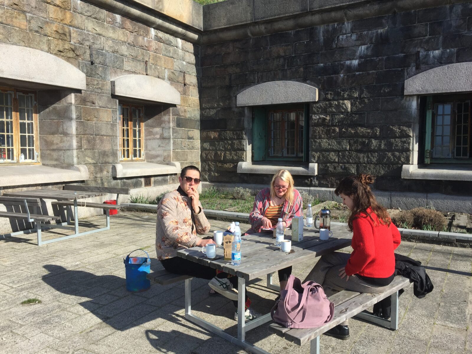 Der bliver rullet cigaretter og lavet mere kaffe. Nogen spiser en sen morgenmad. Vidste jeg ikke bedre, ville jeg tro, at jeg var på en højskole. Måske verdens mindste højskole, uden undervisere og kokkedamer.