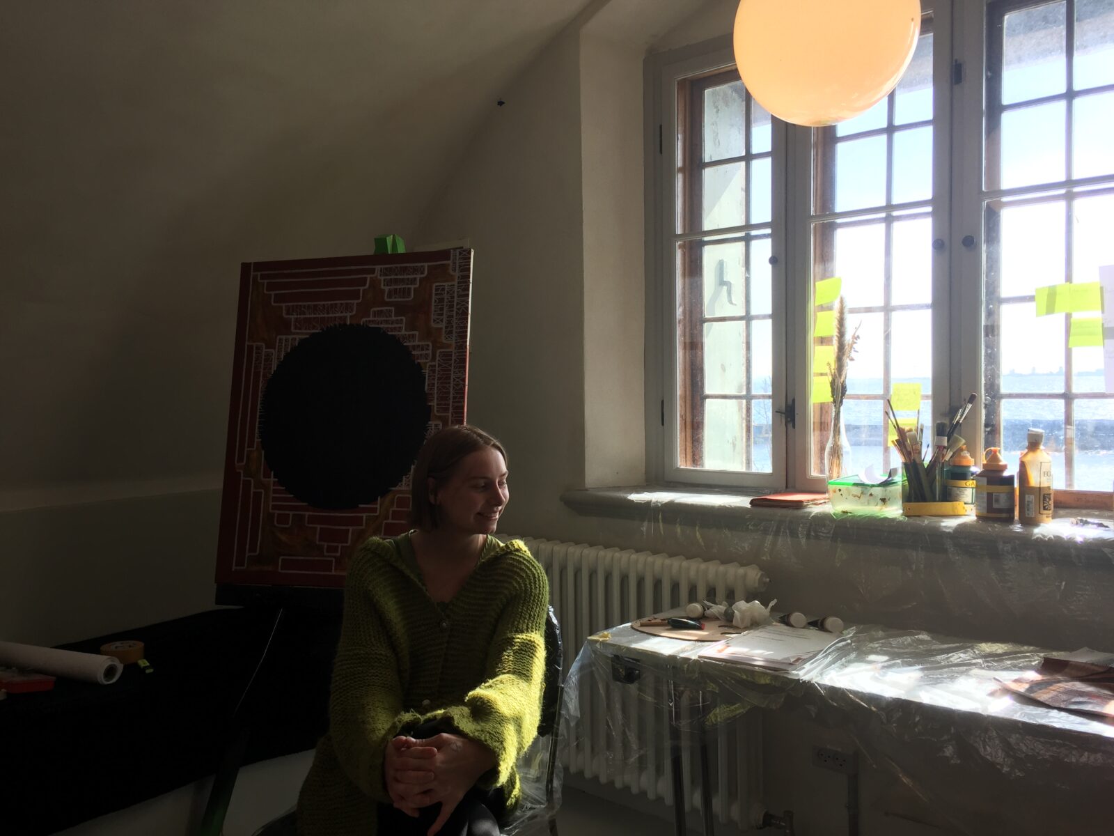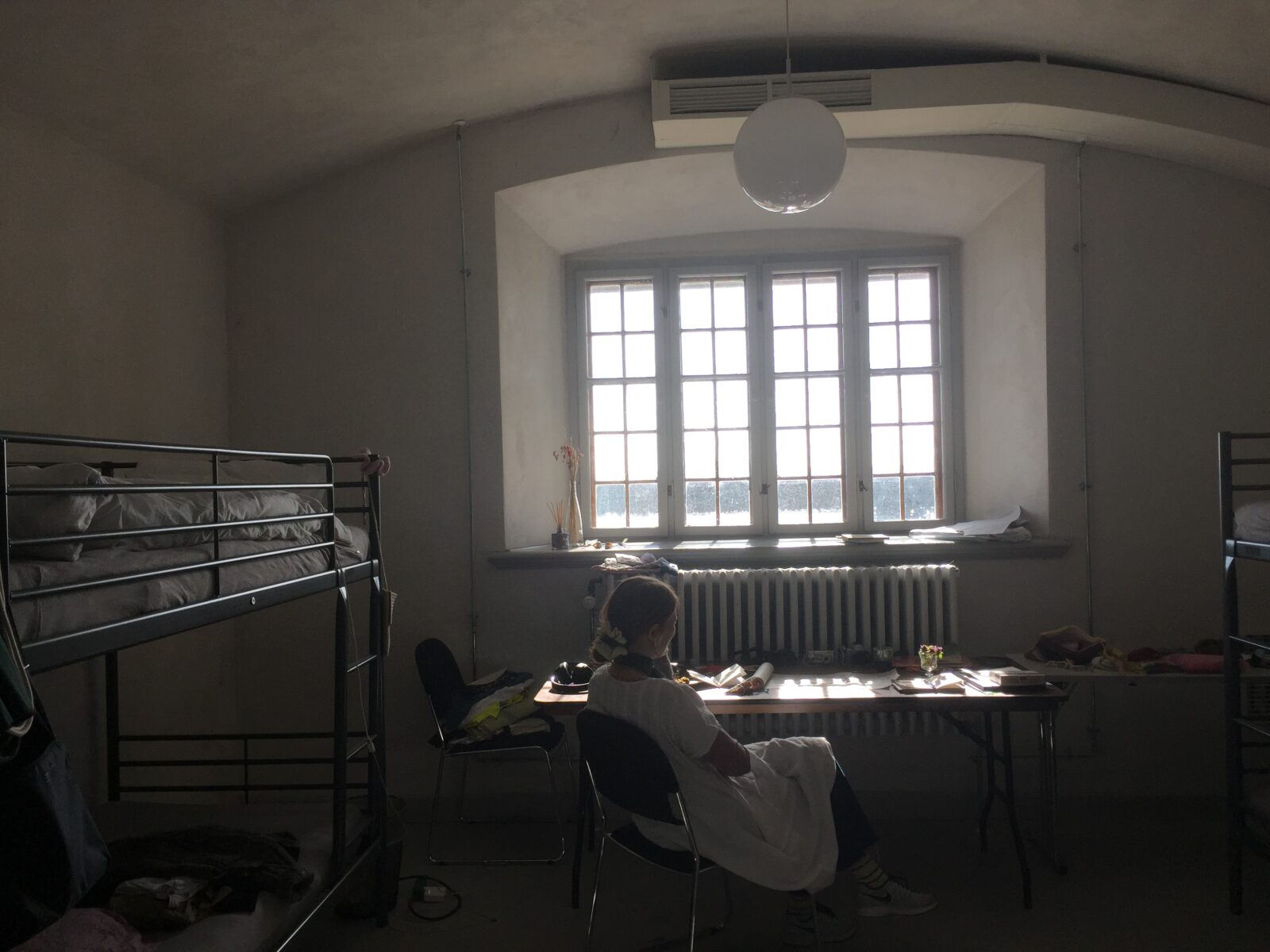 ”Frirum. Åndehul. Jeg kommer egentligt fra en situation, hvor jeg har en masse frirum, nærmest for meget. Lige nu har jeg sabbatår og bor hjemme hos mine forældre midlertidigt. Og tidsmæssigt havde jeg masser af mulighed for at lave en masse kreative projekter, men elementet af, at der er nogen, der forholder sig til det, at jeg indgår i en hverdag med en masse andre, og at jeg præsenterer det jeg laver og bearbejder det i samarbejde med andre – det er det største input ved at være her.”