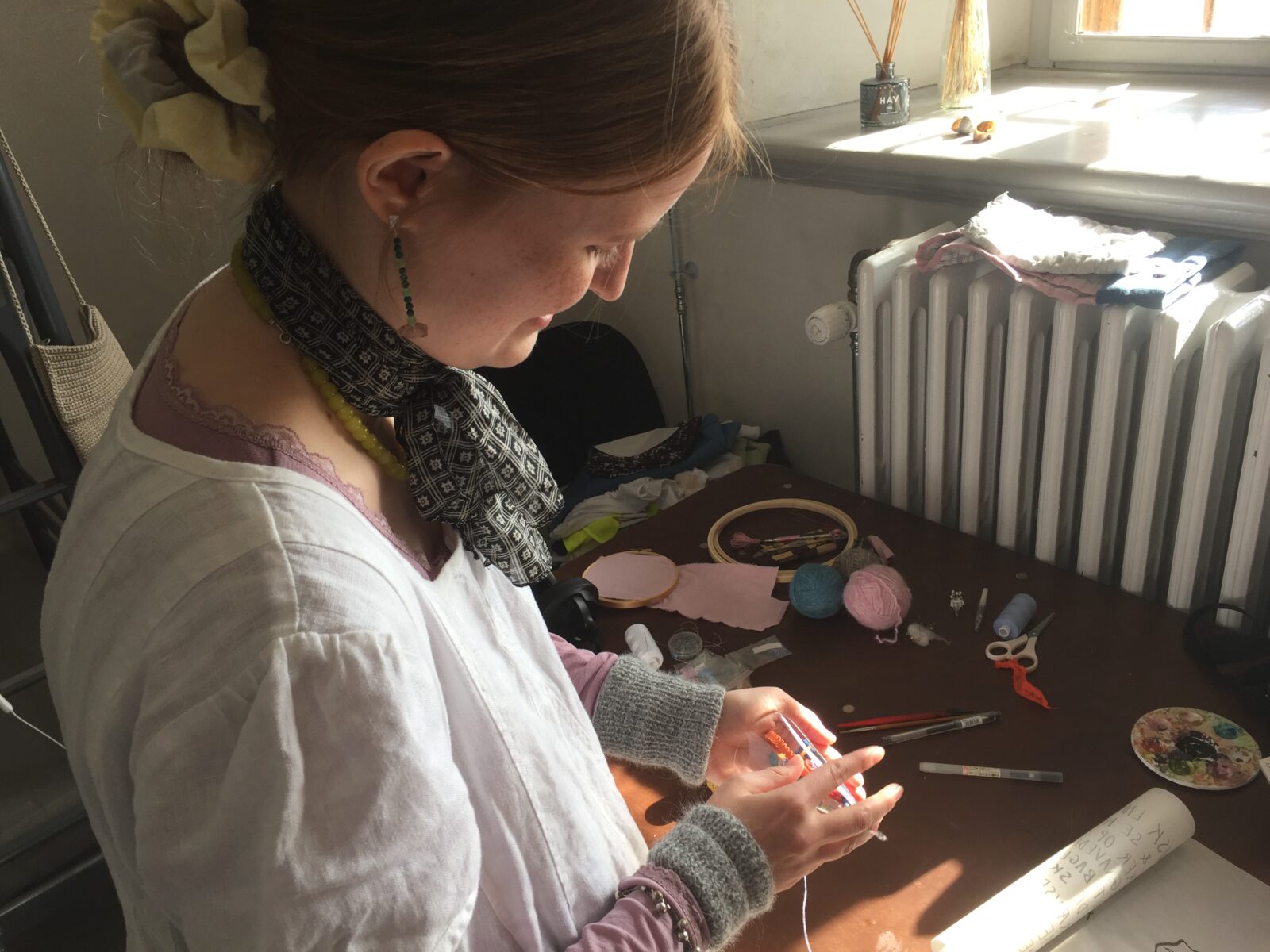 Sasha har været hjemløs siden december, fordi hendes højskoleophold blev aflyst pga. corona. Kunstmotellet var derfor et sted at være og et rum til at få lavet hendes kunst.