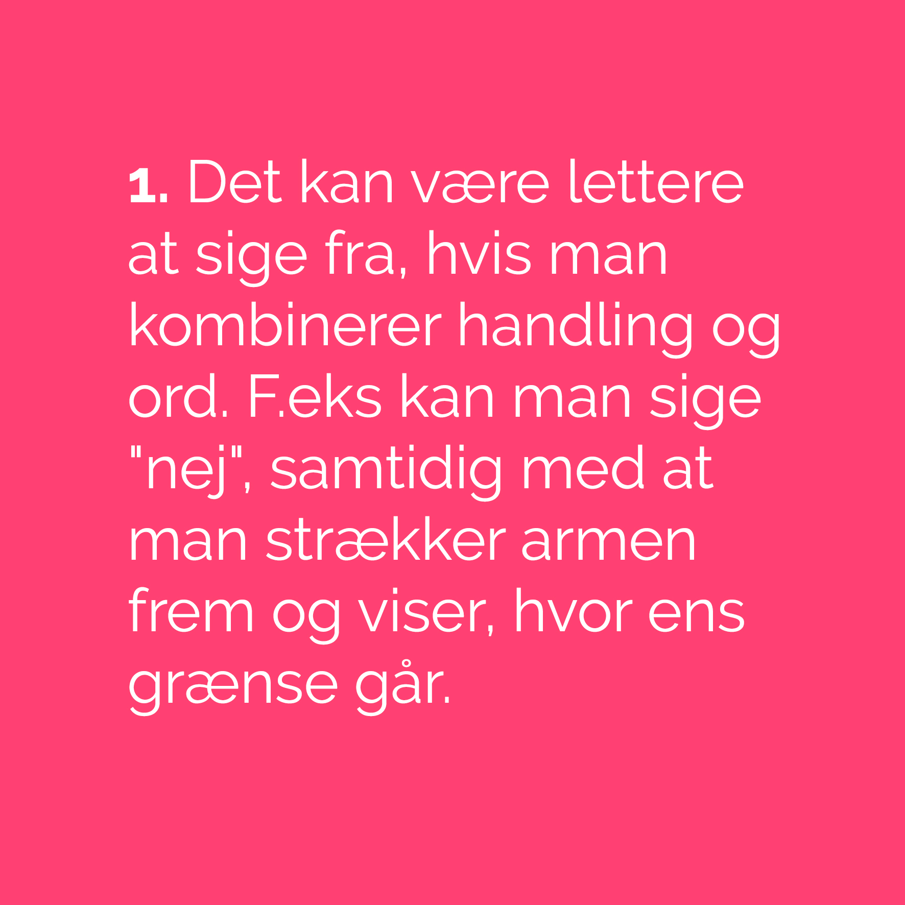 1. Hvis jeg oplever, at noget er ubehageligt eller grænseoverskridende, så er det fuldstændig i orden at sige det højt og forsøge at stoppe det.
