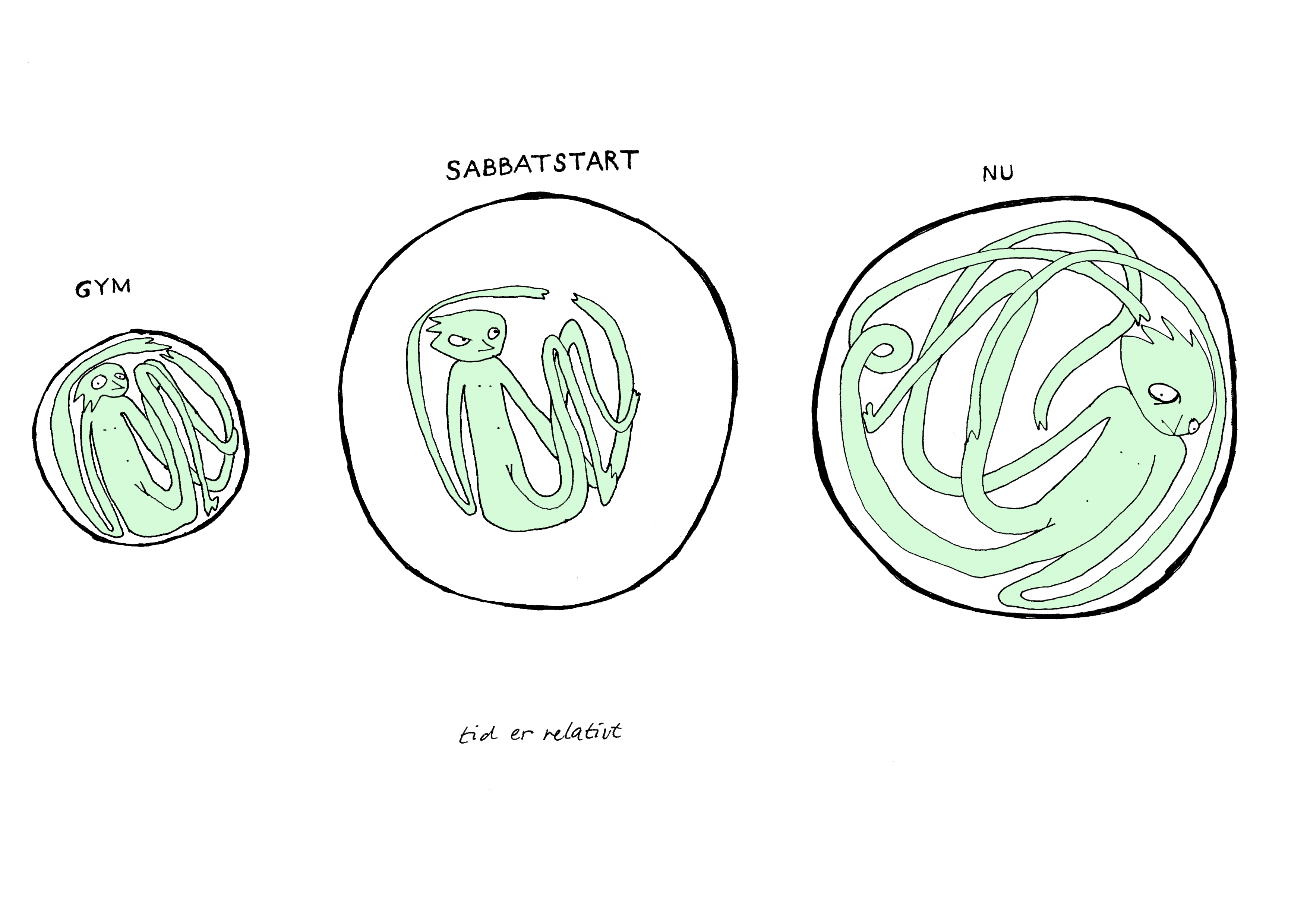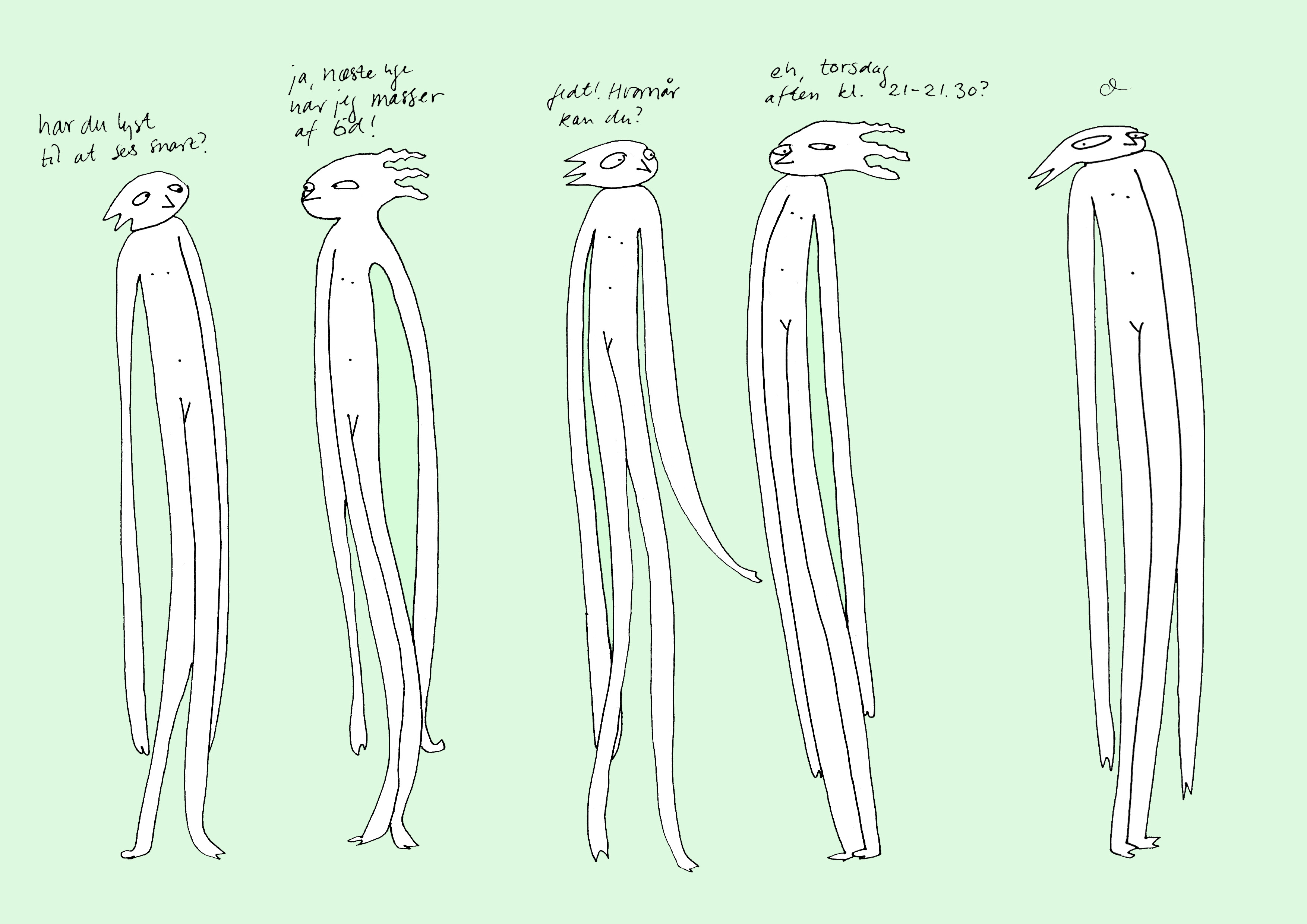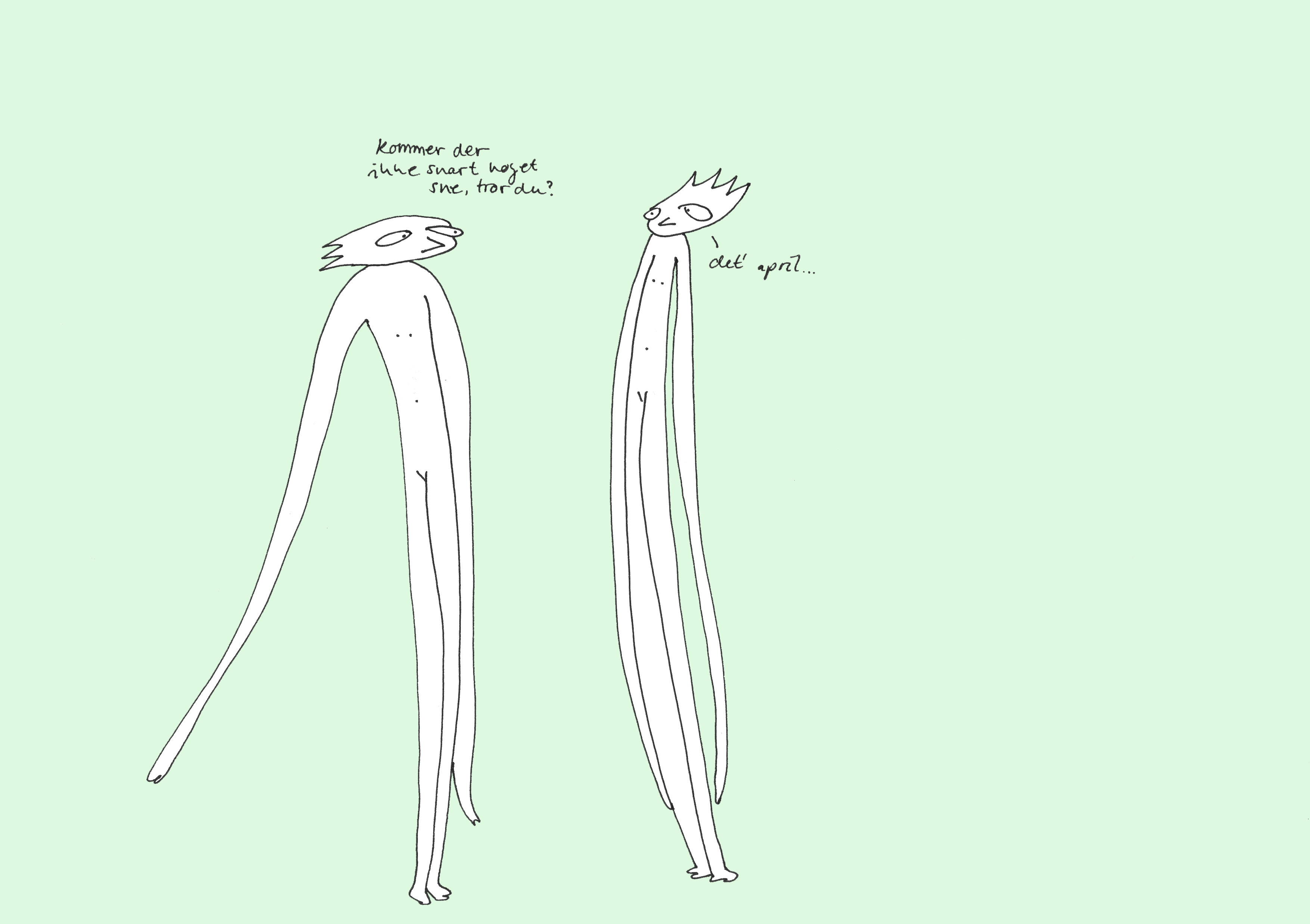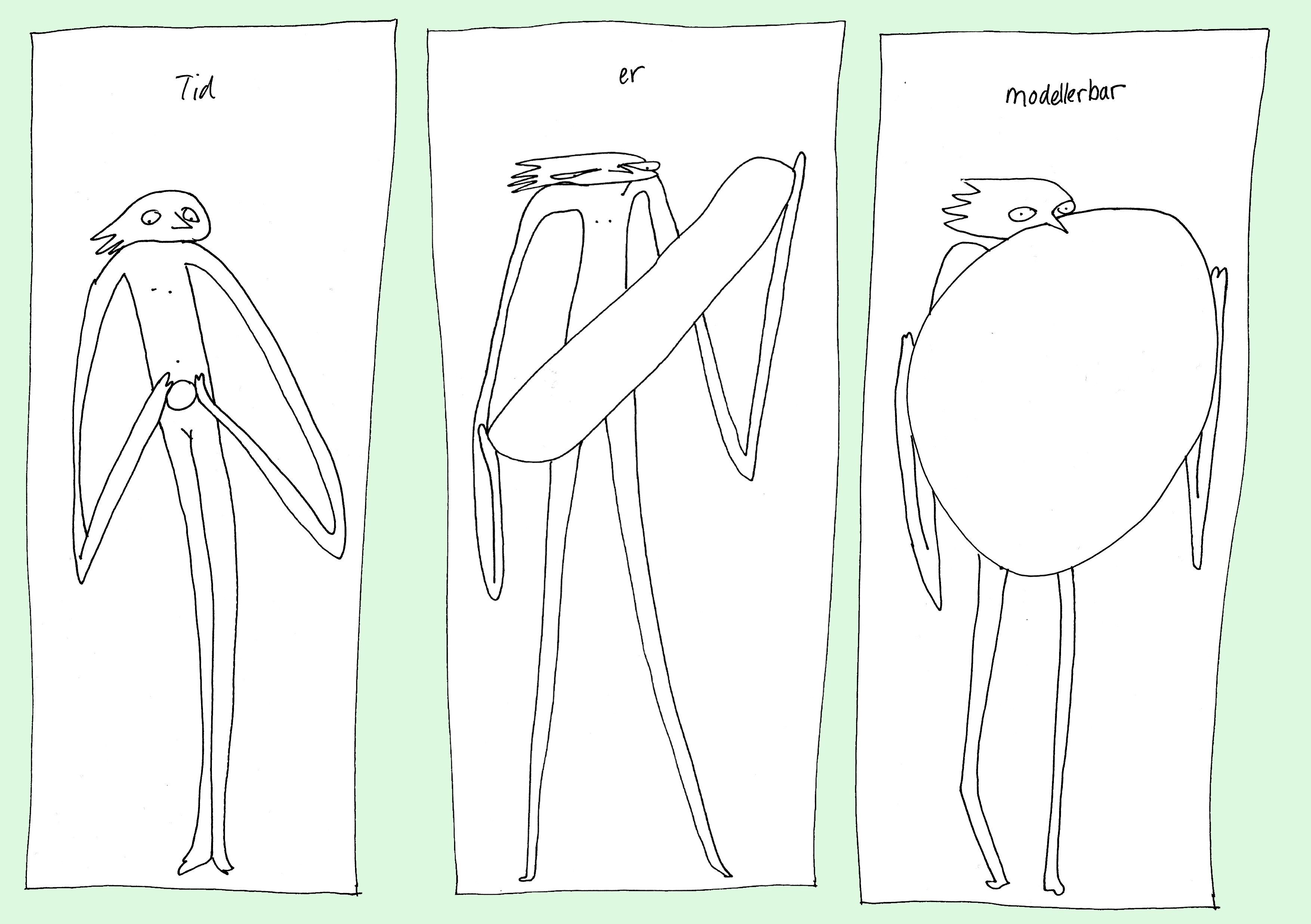 Lang tid, kort tid, flyvsk tid, altid. Tid er relativt og tid er modellerbar. Annelis lange tynde figurer undrer sig!