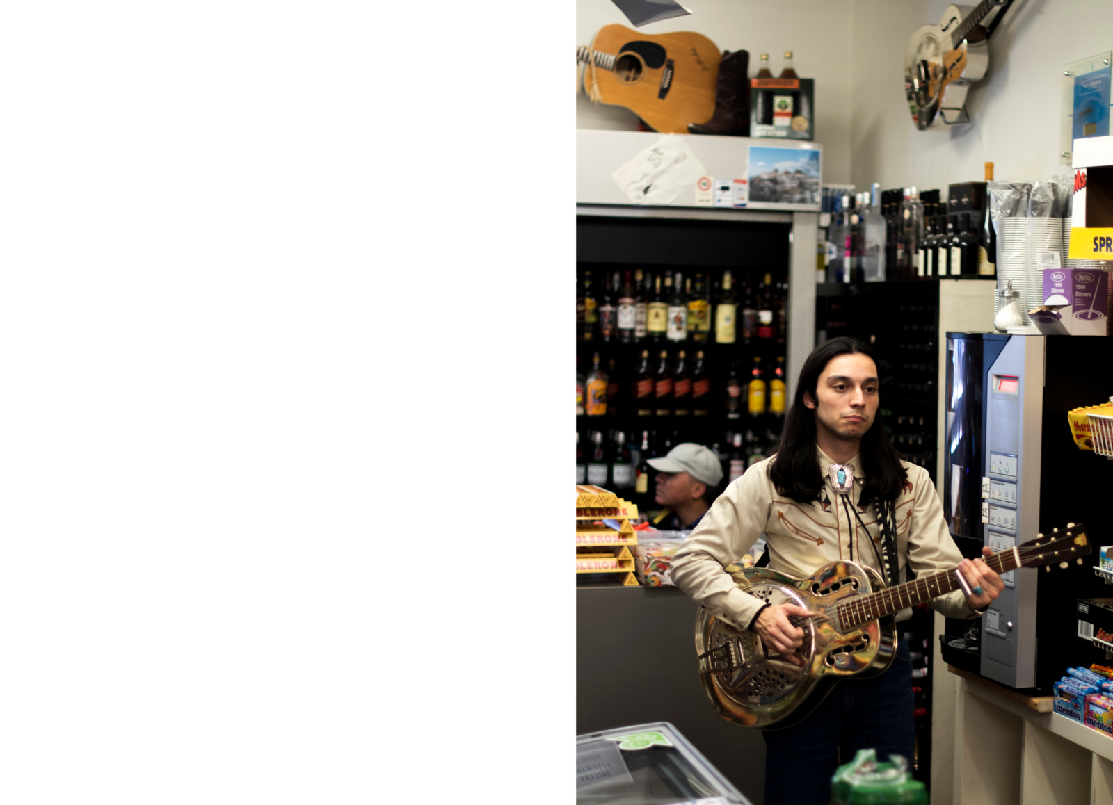 På Blågårdsplads, Nørrebro, findes den familiedrevne Blågårdskiosk. Her kan du få is, peanuts, hindbærbrus og guitar. I baglokalet har Sasan bl.a. sit værksted, hvor han istandsætter guitarer. Under faldlemmen i kioskgulvet hænger flere guitarer, står en forstærker, et trommesæt og et sæt bildæk.