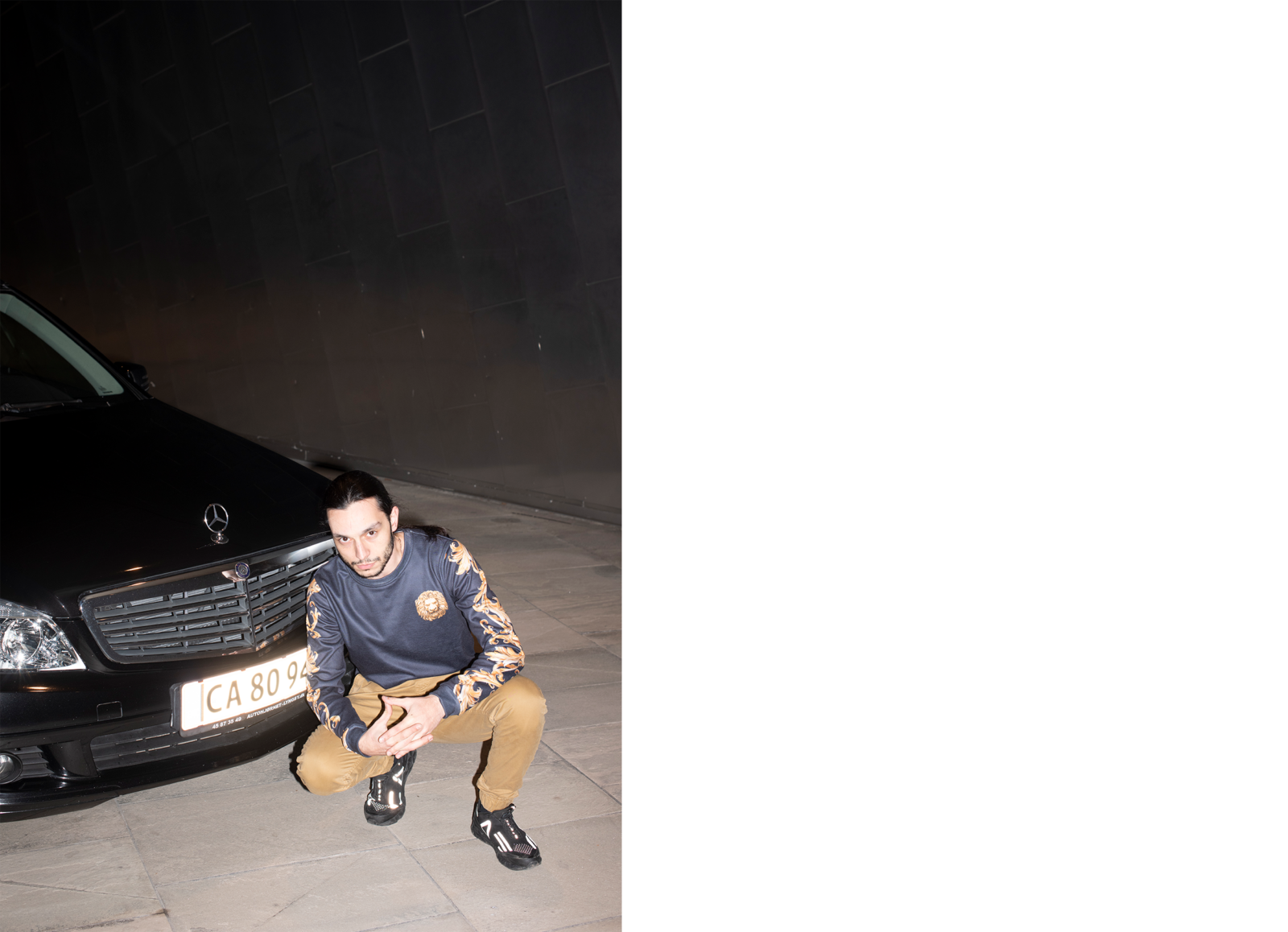 Et stenkast fra kiosken, i garagen ved siden af Netto, holder familiens Mercedes C200: 10 år gammel, nye fælge og sort… “Selvfølgelig”.