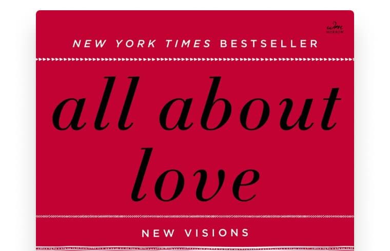 På en fin og ikke alt for selvhøjtidelig måde udfordrer Hooks, hvad kærlighed er for en størrelse og mest af alt, hvilket syn og værdi, vi tildeler den i samfundet. Jeg lover dig, at den sætter tanker i gang.