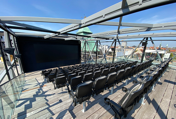 Selvom sommeren er ovre om lidt, håber jeg på godt vejr endnu. Filmtaget på toppen af Cinemateket er nemlig lige blevet åbnet, og derfor kan man nu nyde en udendørs biografoplevelse med udsigt over Københavns tage.