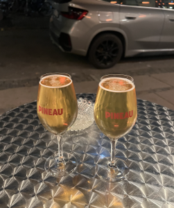 Vi sætter os udenfor på Pineau, men får desværre en dårlig overraskelse, da vi skal ind og bestille. Priserne er blevet hævet, og deres paloma drink er væk fra menukortet.