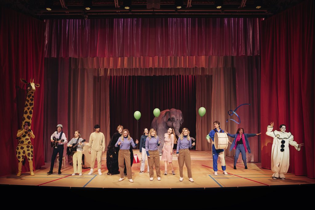 Generelt er Skolekomedie en kreativ legeplads for, hvad der kan lade sig gøre. Jeg blev gang på gang overrasket over, hvad de fik gennemført. En aktiv stikbold kamp med publikum midt i stykket. Konfetti. Stilhed og larm. Sang og ironi. En kæmpe stor elefant og klovne.