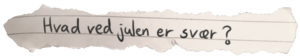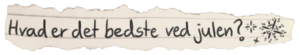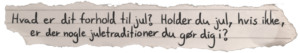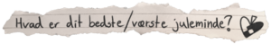 Anne: Mit forhold til jul er ret dårligt. Julen er desværre en tid for mig, hvor jeg år efter år kæmper med dilemmaer, såsom hvornår det er okay at vælge traditioner til og fra? Derudover er det en tid, hvor jeg bliver mindet om, at jeg desværre har en – hvad kan man sige – dysfunktionel familie, og at vi på trods af det alligevel samles om et bord hvert år og “lader som om”, fordi at det jo er det, man gør til jul.