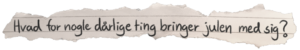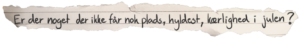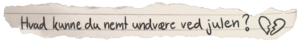 Alle mulige gave-aftaler på kryds og tværs: “Vi har aftalt med familien fra Djursland om, at vi ikke er på gaver længere. ” Nå, nu er julen en byttehandel eller hvad? Jeg gad virkelig godt, at julen blev mindre egoistisk og fandt tilbage til kernen.
